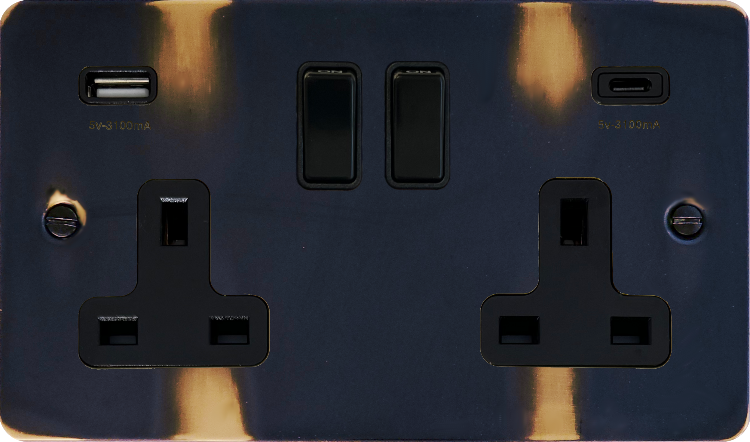 Flat Aged Double Socket with USB (USB-A and USB-C/Black Switches) - G+H FAN911B