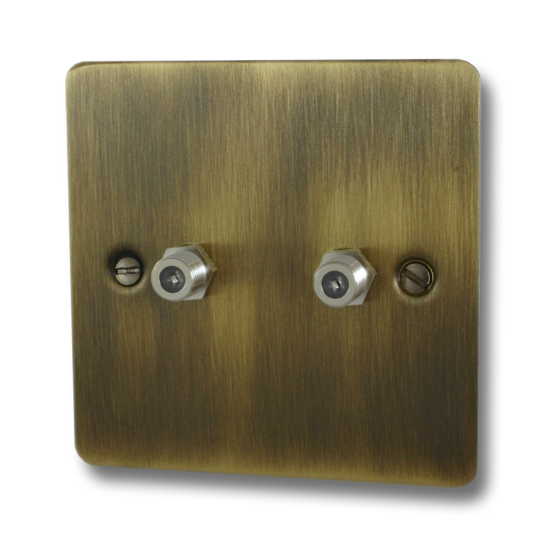 Flat Antique Brass Double Satellite Socket - G+H FAB237