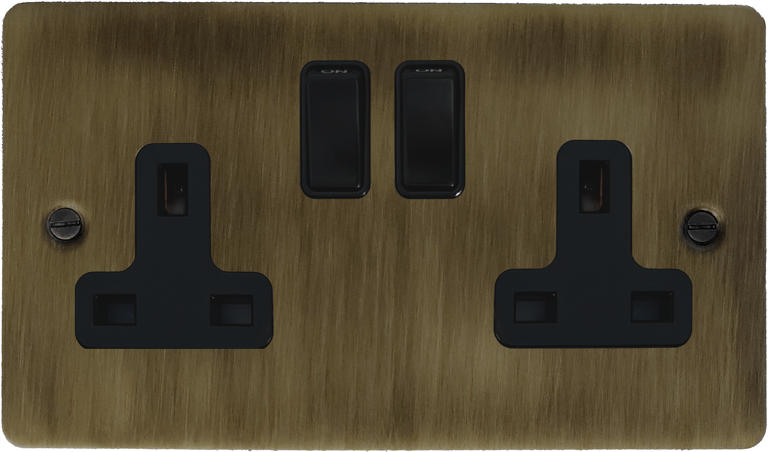 Flat Antique Brass Socket (2 Gang/Black Switches) - G+H FAB10B