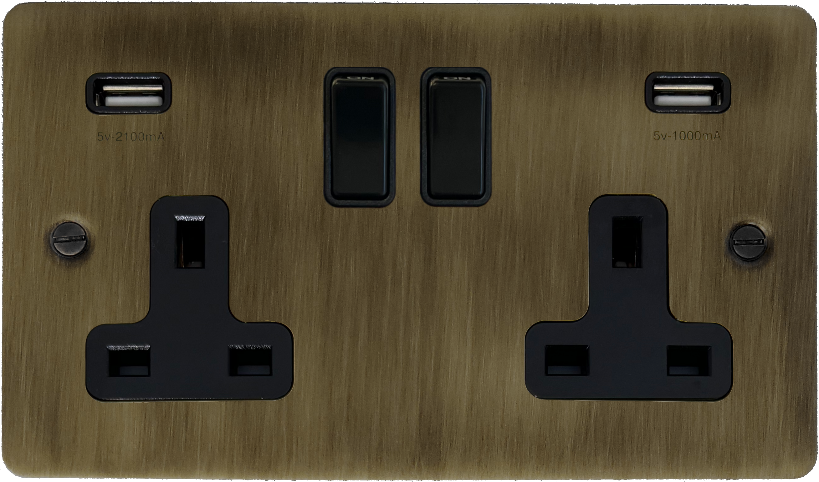 Flat Antique Brass Socket with USB (2 Gang/Black Switches) - G+H FAB910B