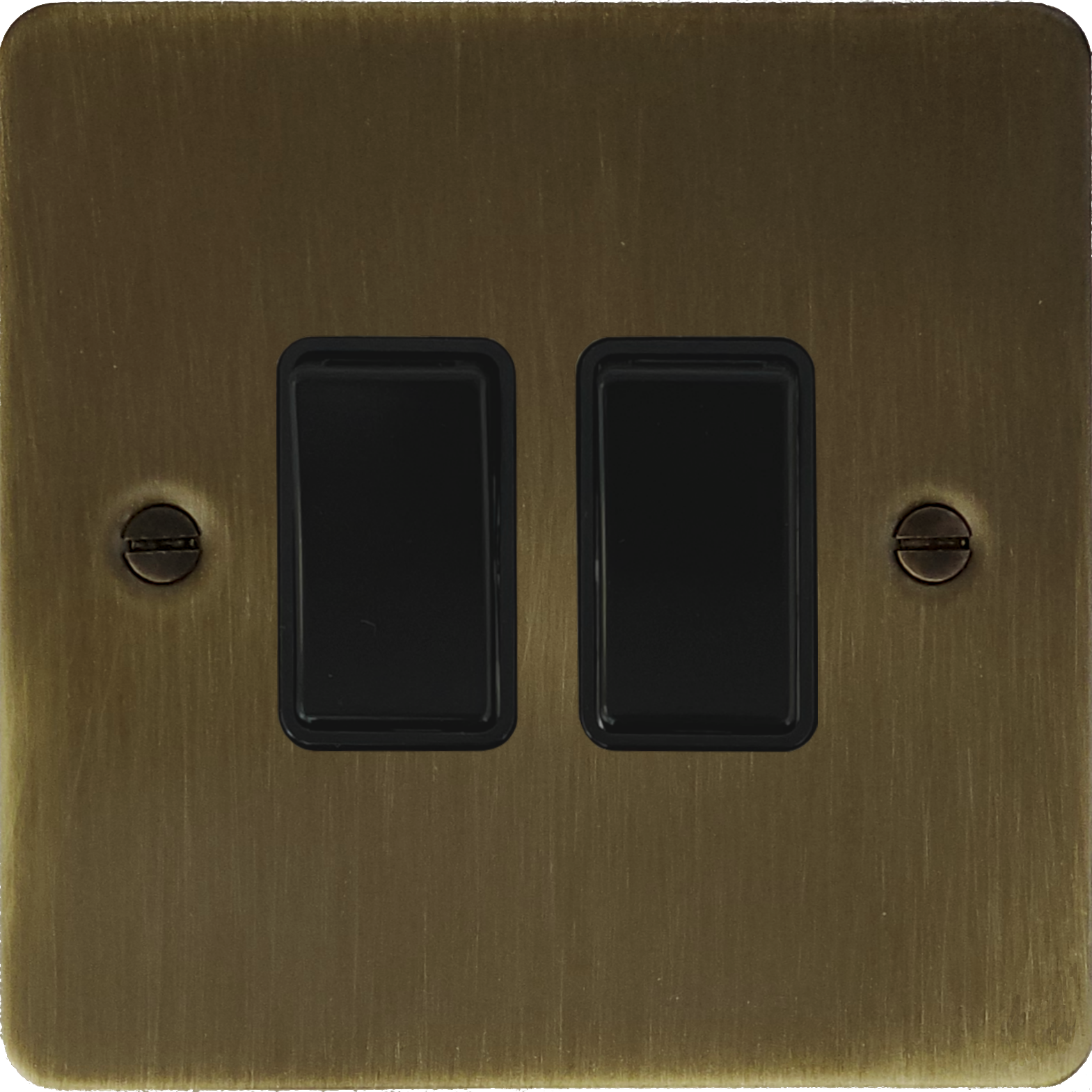 Flat Antique Brass Switch (2 Gang/Black Switches) - G+H FAB2B