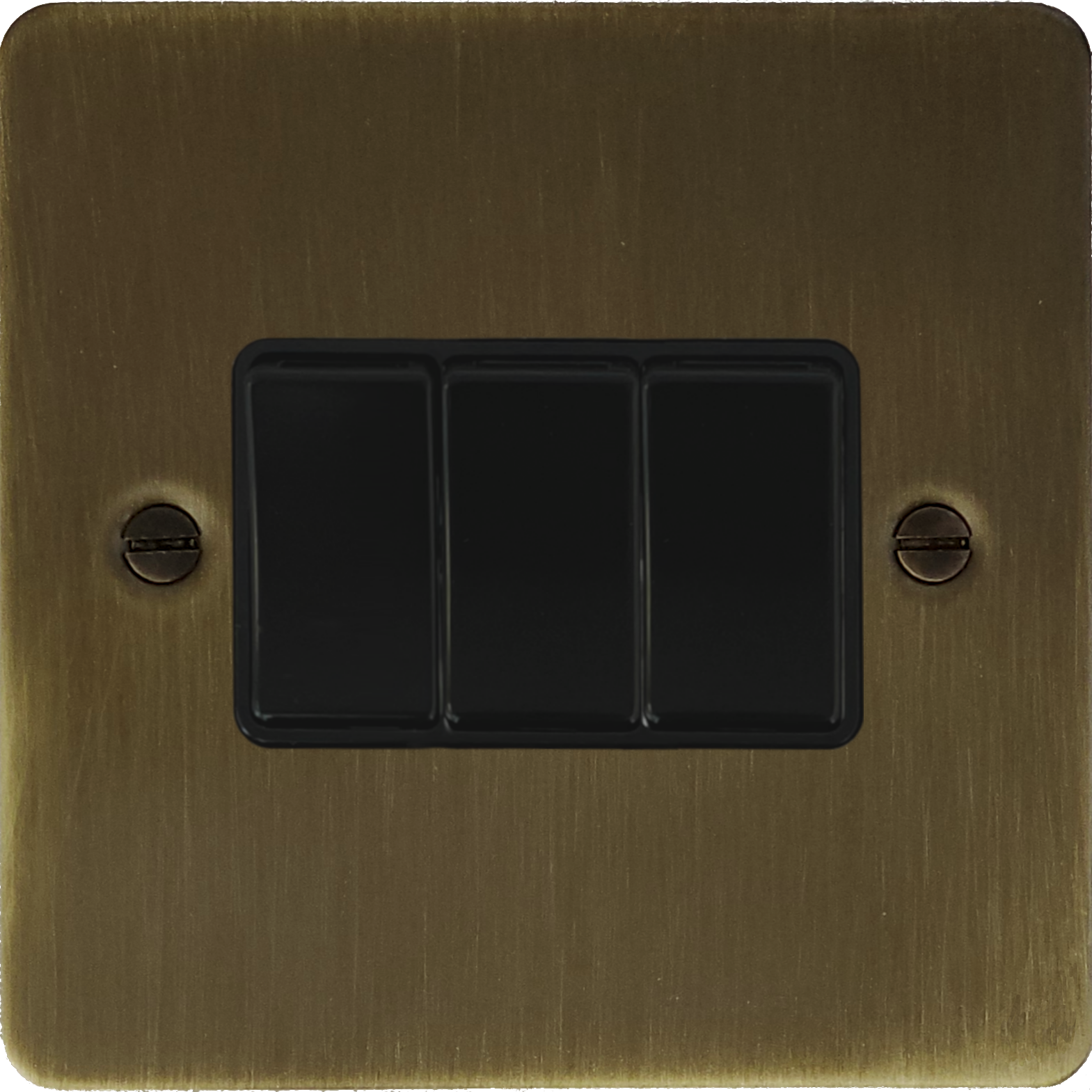 Flat Antique Brass Switch (3 Gang/Black Switches) - G+H FAB3B