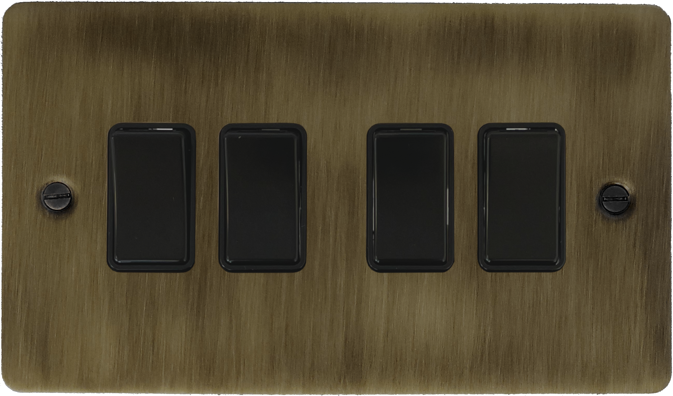 Flat Antique Brass Switch (4 Gang/Black Switches) - G+H FAB4B