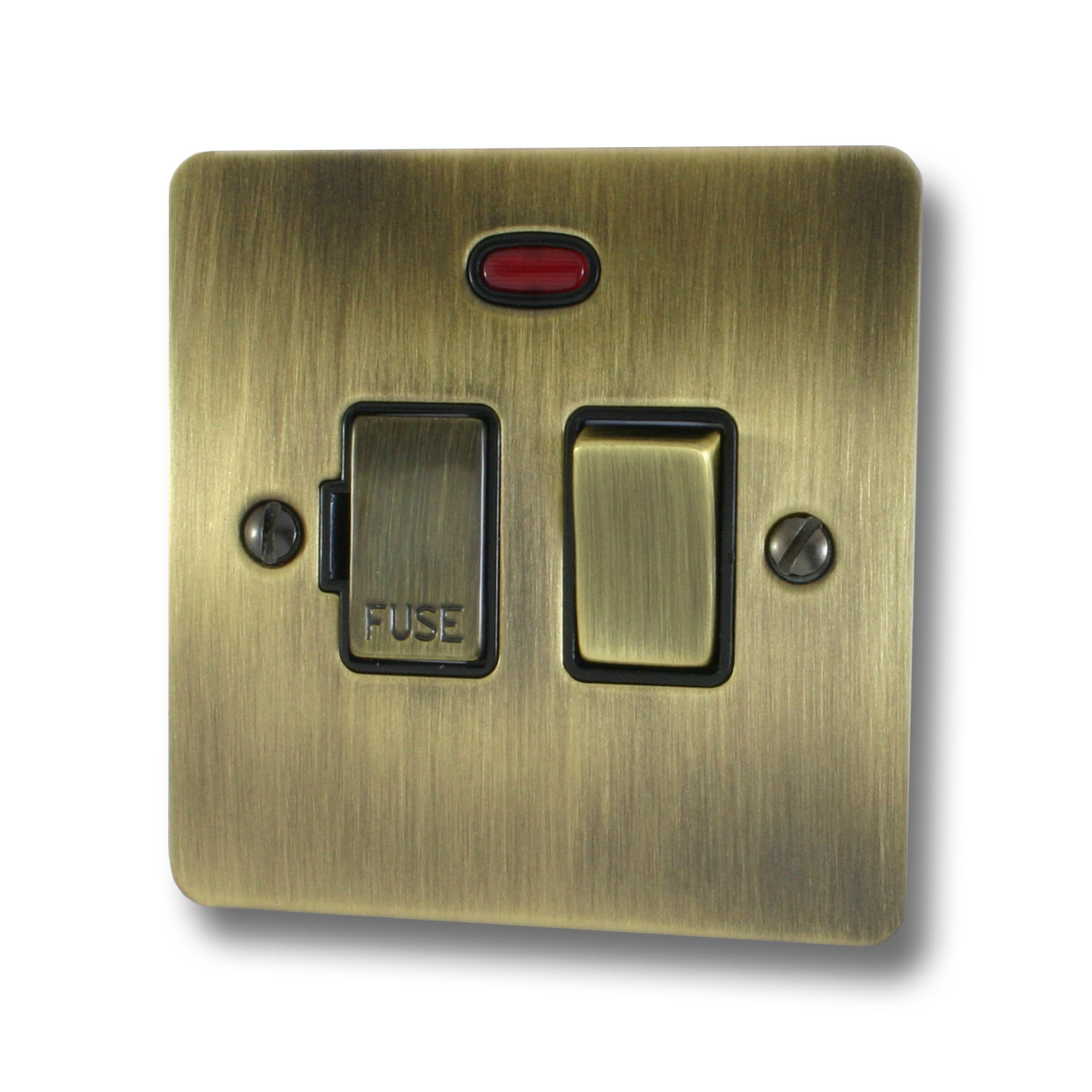 Flat Antique Brass Switched Fused Spur with Neon - G+H FAB327