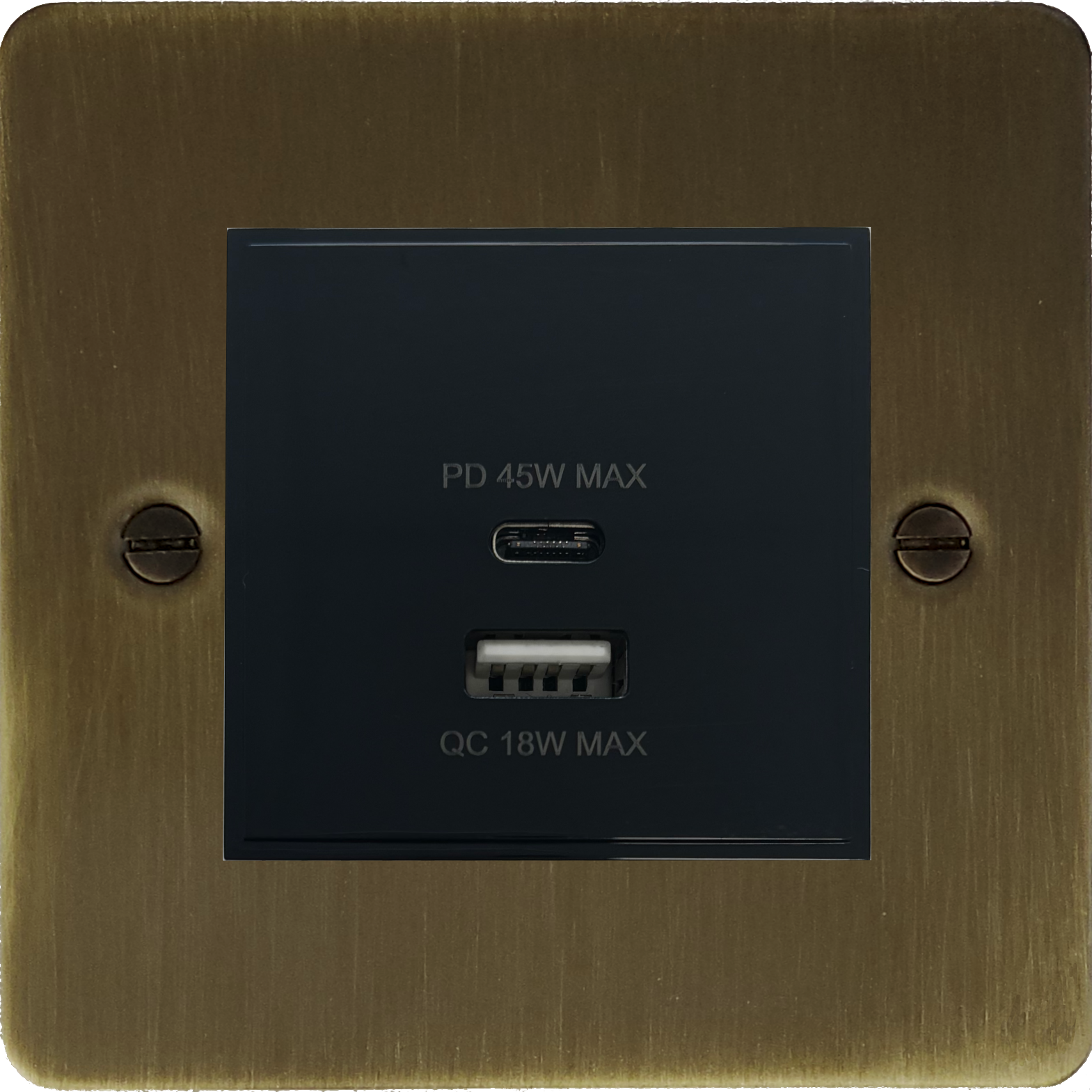 Flat Antique Brass USB Charger (Dual USB A + C Quick Charge) (1 Gang) - G+H FAB43B