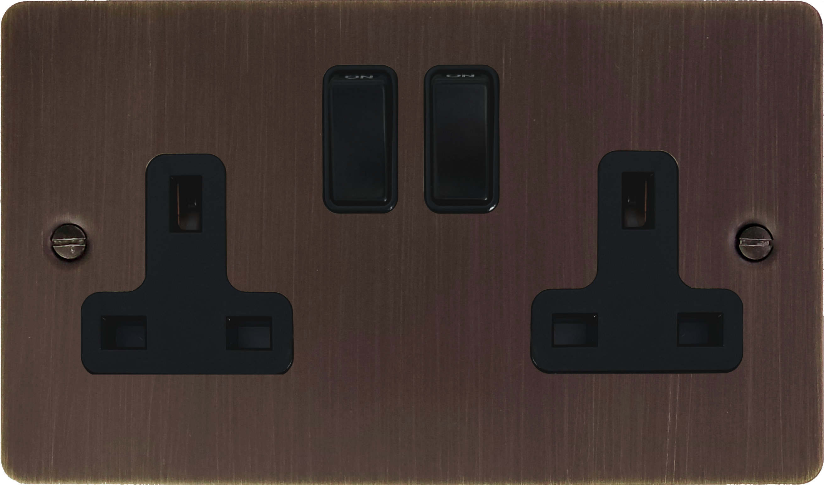 Flat Antique Copper Double Socket (Black Switch) - G+H FAC10B