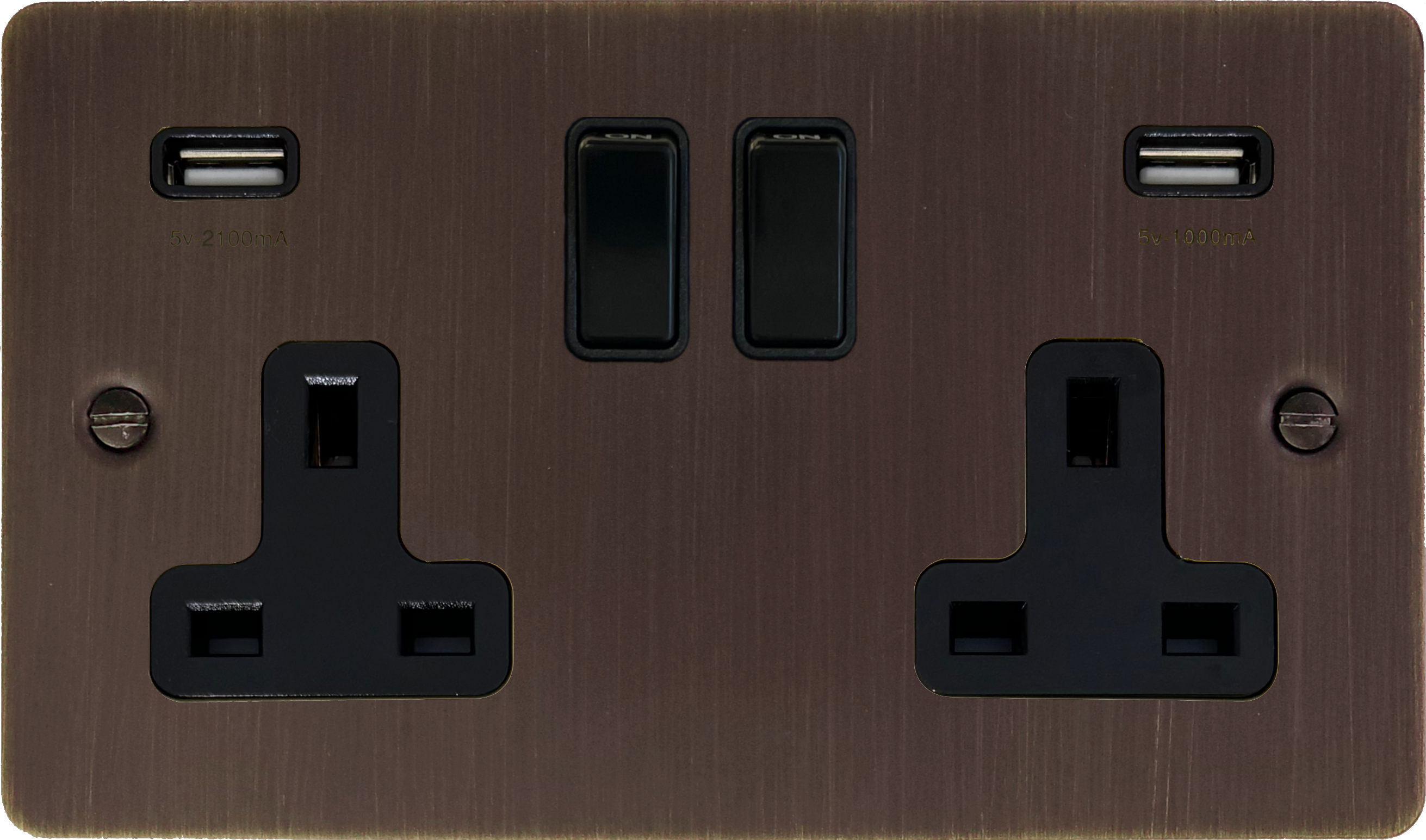Flat Antique Copper Double Socket with USB (Black Switch) - G+H FAC910B