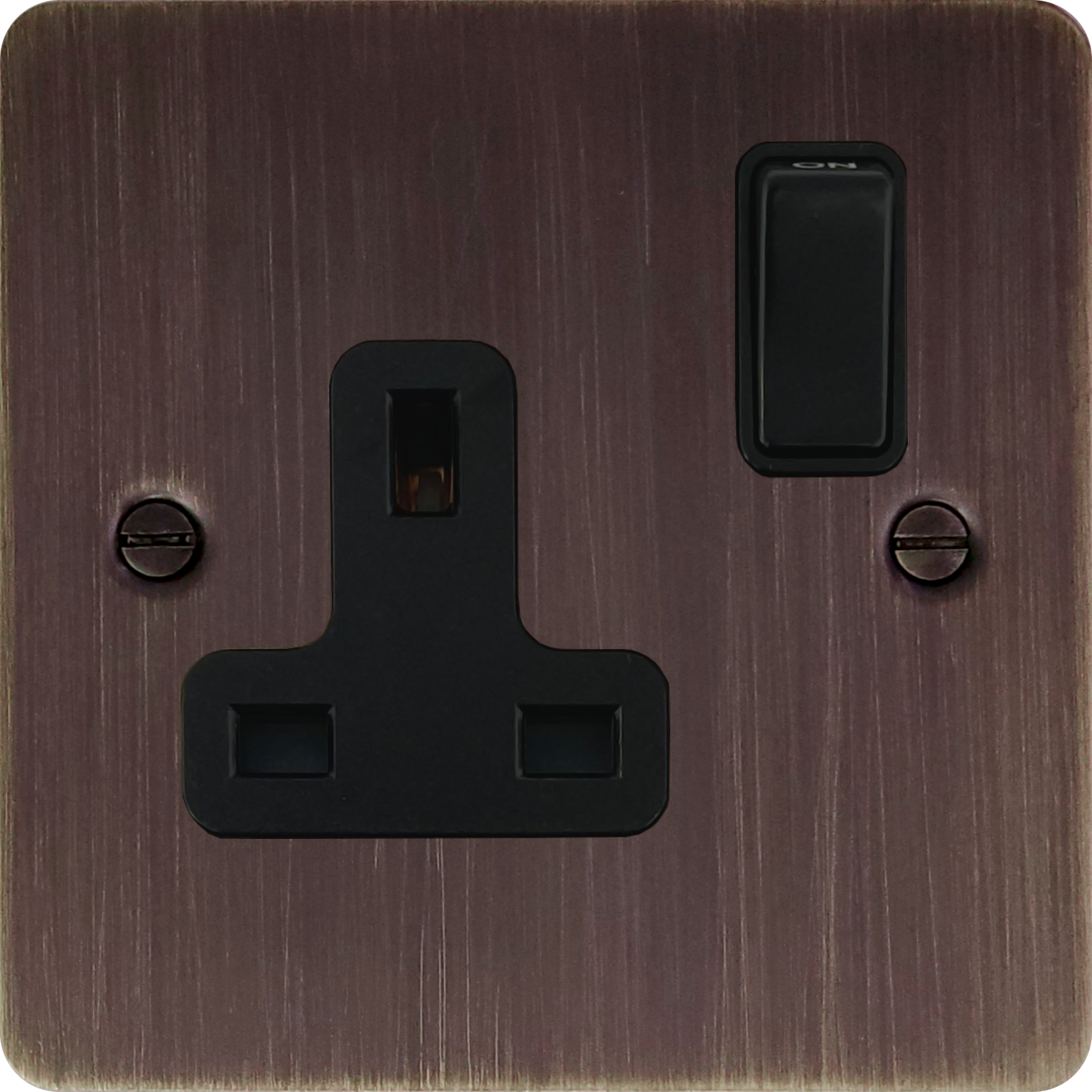 Flat Antique Copper Single Socket (Black Switch) - G+H FAC9B