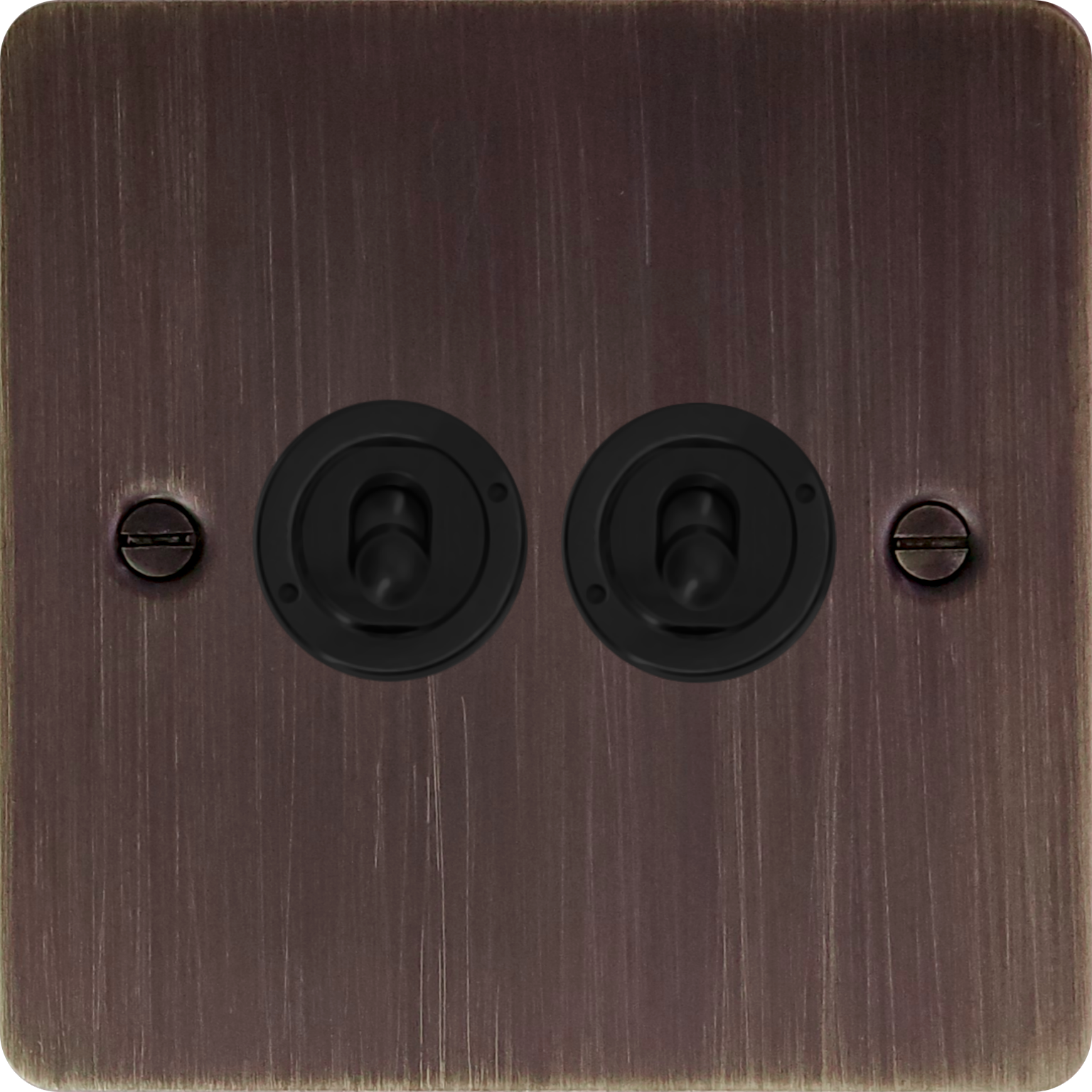 Flat Antique Copper Toggle Switch (2 Gang/Matt Black Toggles) - G+H FAC382-FBK