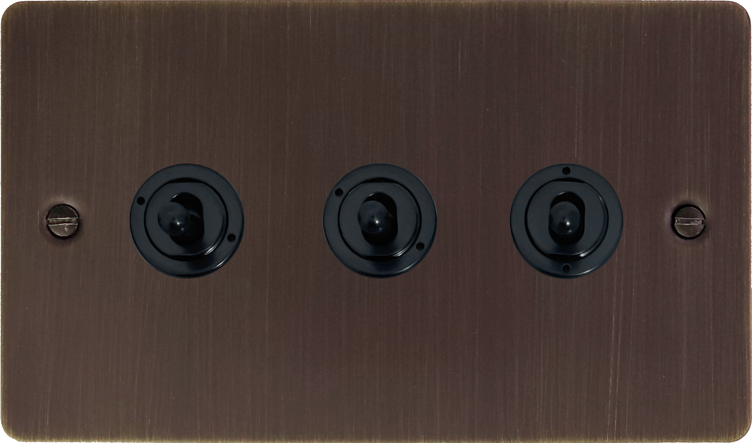 Flat Antique Copper Toggle Switch (3 Gang) - G+H FAC383