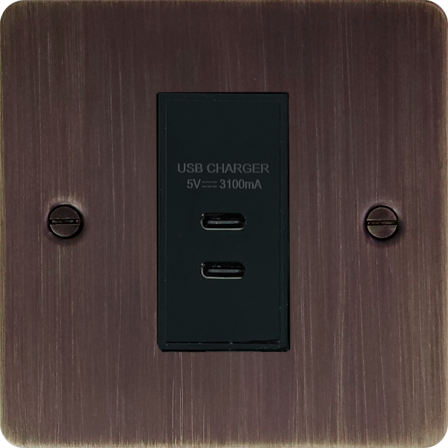Flat Antique Copper USB Charger (2x USB-C) (1 Gang/Black Insert) - G+H FAC42B