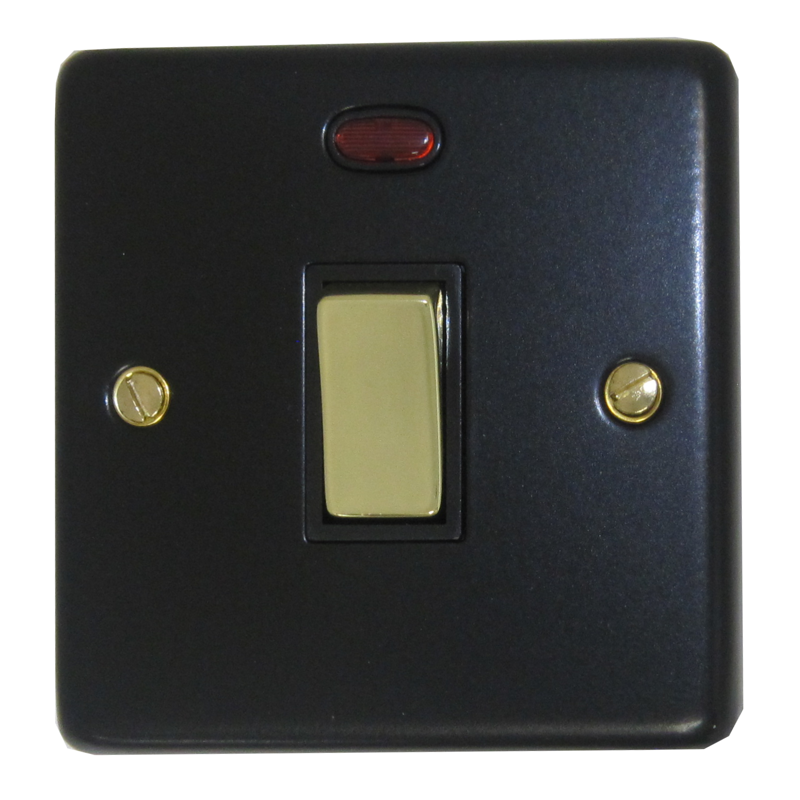 Flat Black 20 Amp DP Switch with Neon (Polished Brass Switch) - G+H CFB326-PB