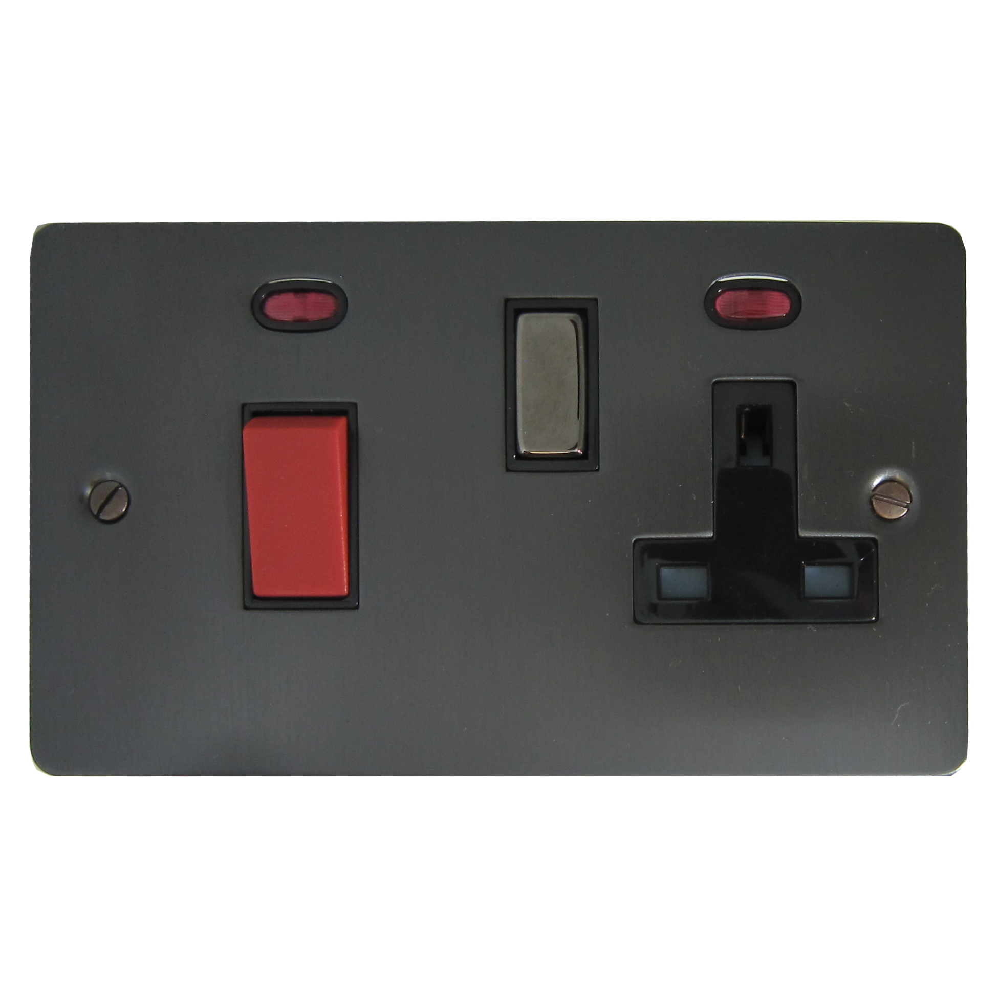 Flat Black Bronze Cooker Switch with Socket (Black insert/ Black Nickel Switch) - G+H FBB329