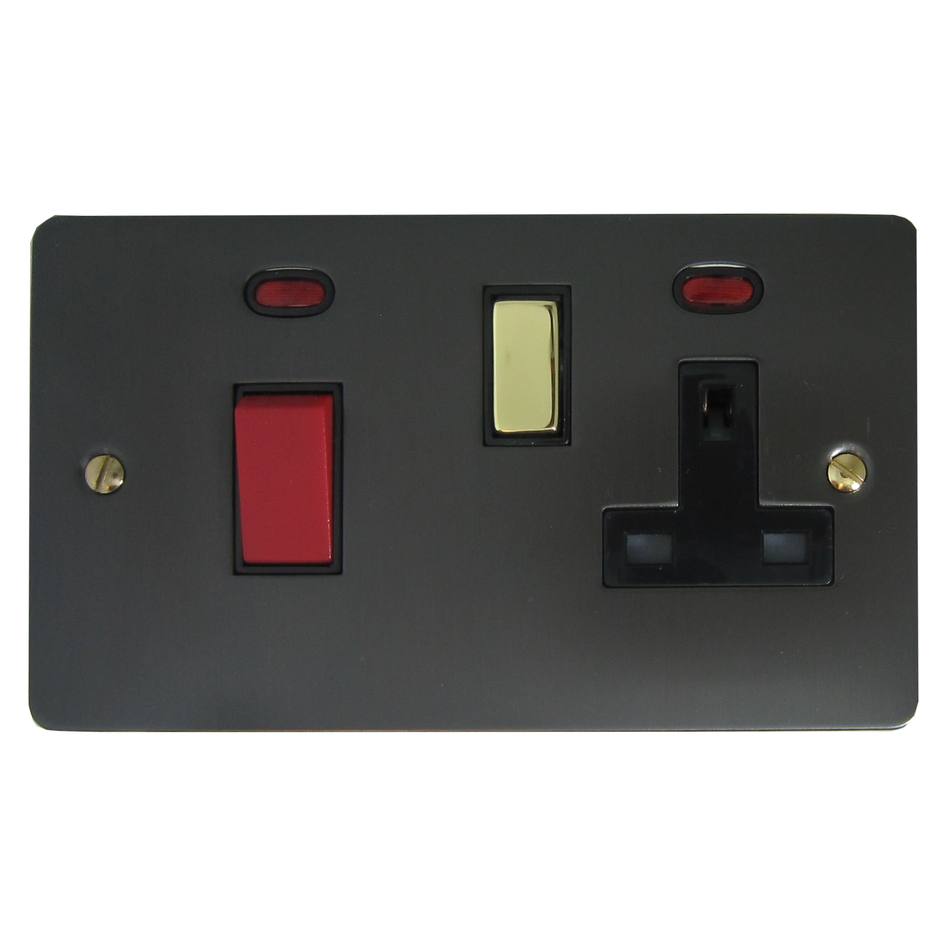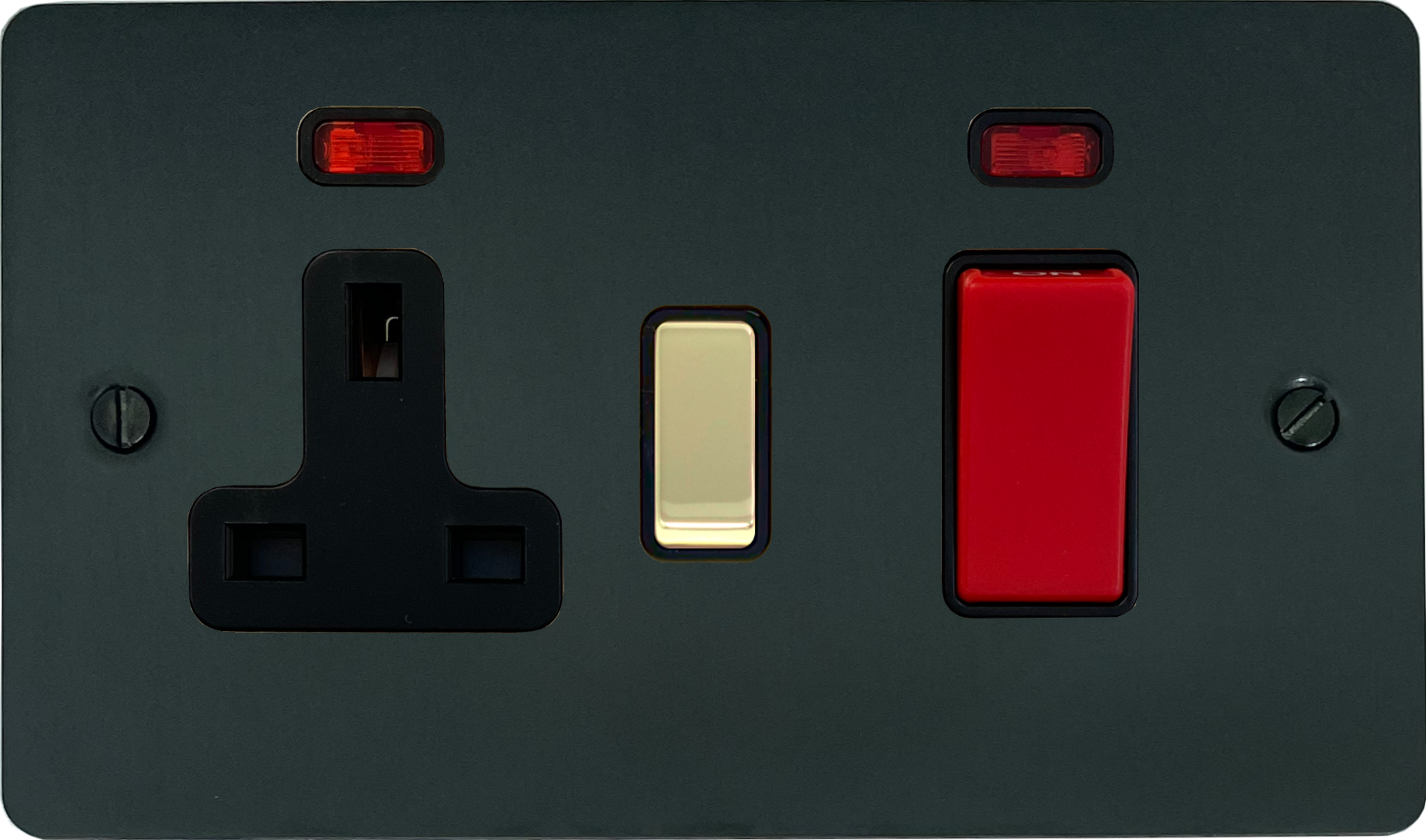 Flat Black Bronze Cooker Switch with Socket (Black insert/ Polished Brass Switch) - G+H FBB329-PB