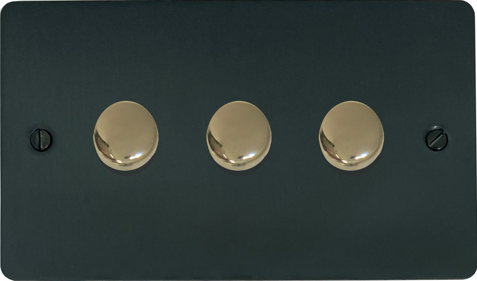 Flat Black Bronze Dimmer (3 Gang/400W/Polished Brass Cap) - G+H FBB13-PB