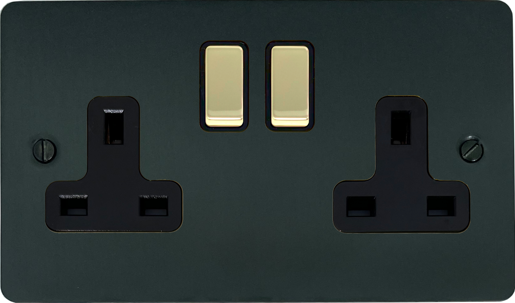 Flat Black Bronze Double Socket (Black Insert/ Polished Brass Switches) - G+H FBB310-PB