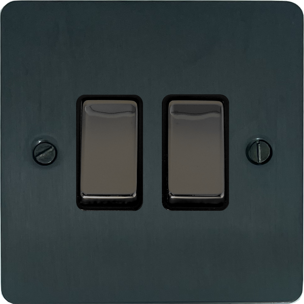 Flat Black Bronze Light Switch (2 Gang/Black Nickel Switches) - G+H FBB302