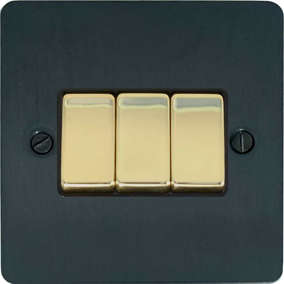 Flat Black Bronze Light Switch (3 Gang/Polished Brass Switches) - G+H FBB303-PB
