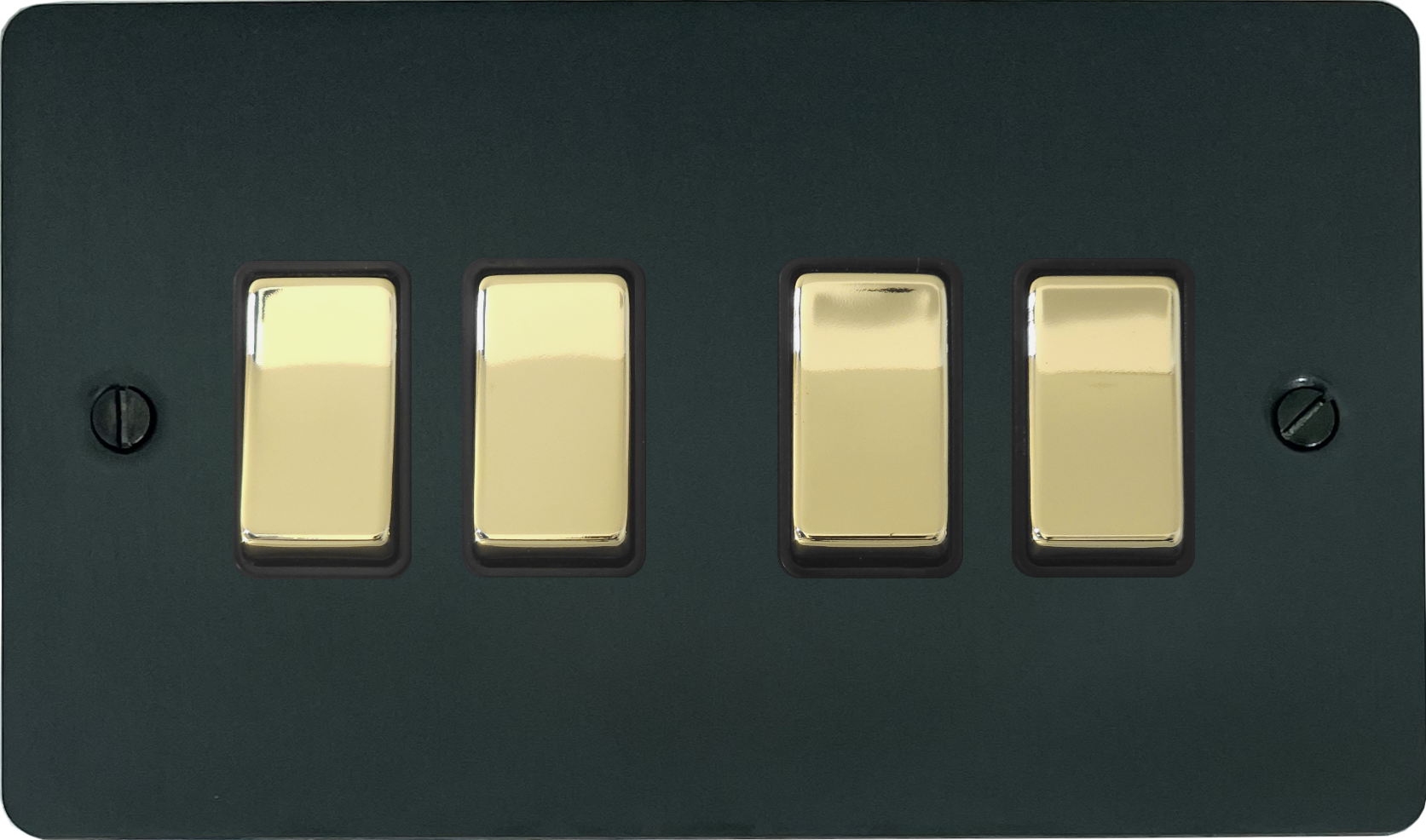 Flat Black Bronze Light Switch (4 Gang/Polished Brass Switches) - G+H FBB304-PB