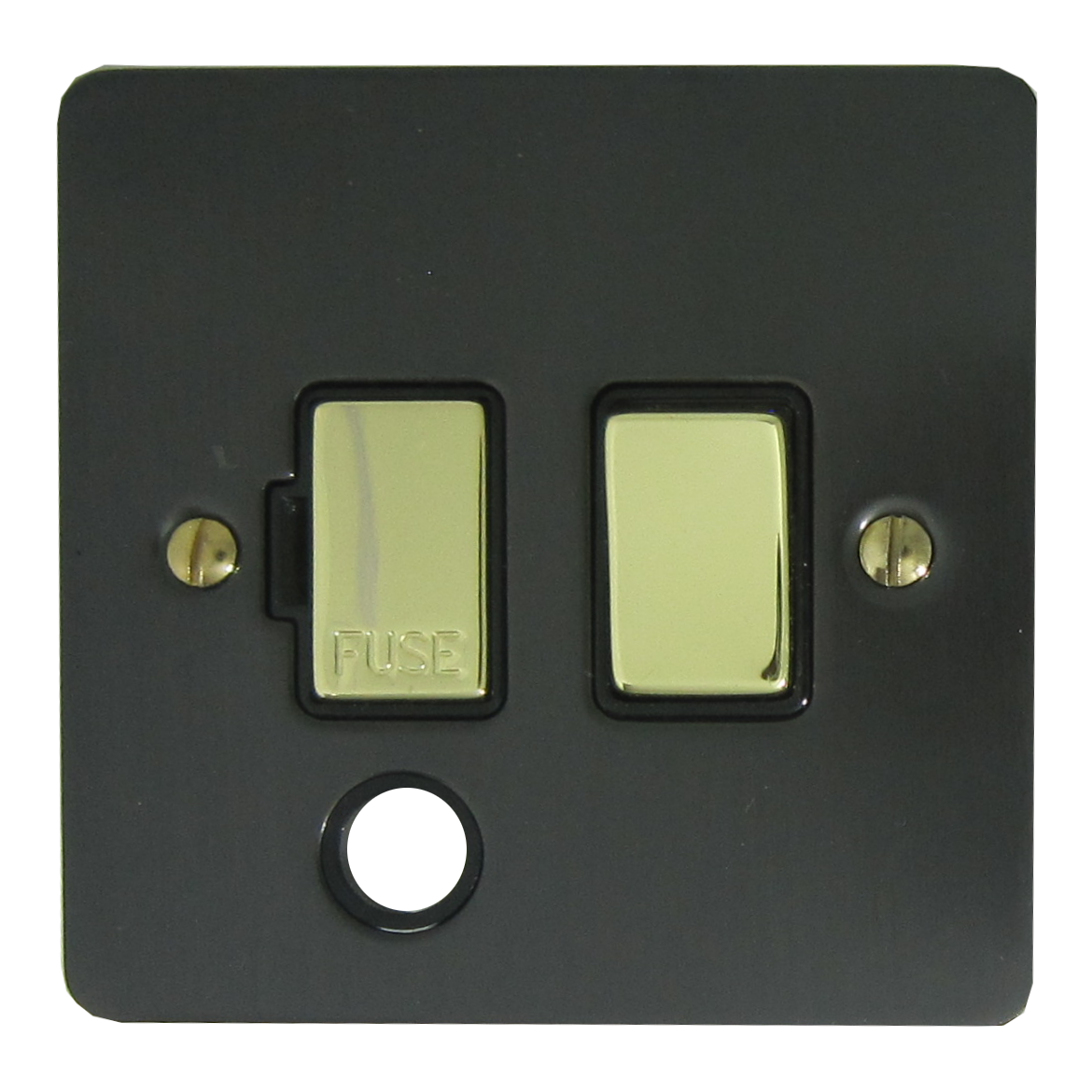 Flat Black Bronze Switched Fused Spur with Flex Outlet (Black Insert/ Polished Brass Switch) - G+H FBB356-PB