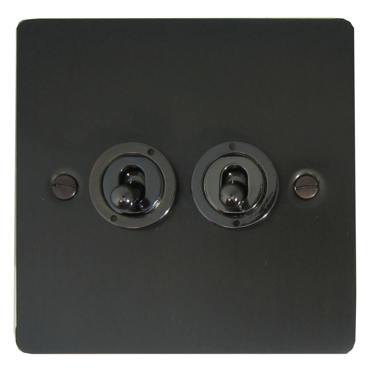 Flat Black Bronze Toggle Grid Plate (2 Gang/Black Nickel Toggle) - G+H FBB82-BN