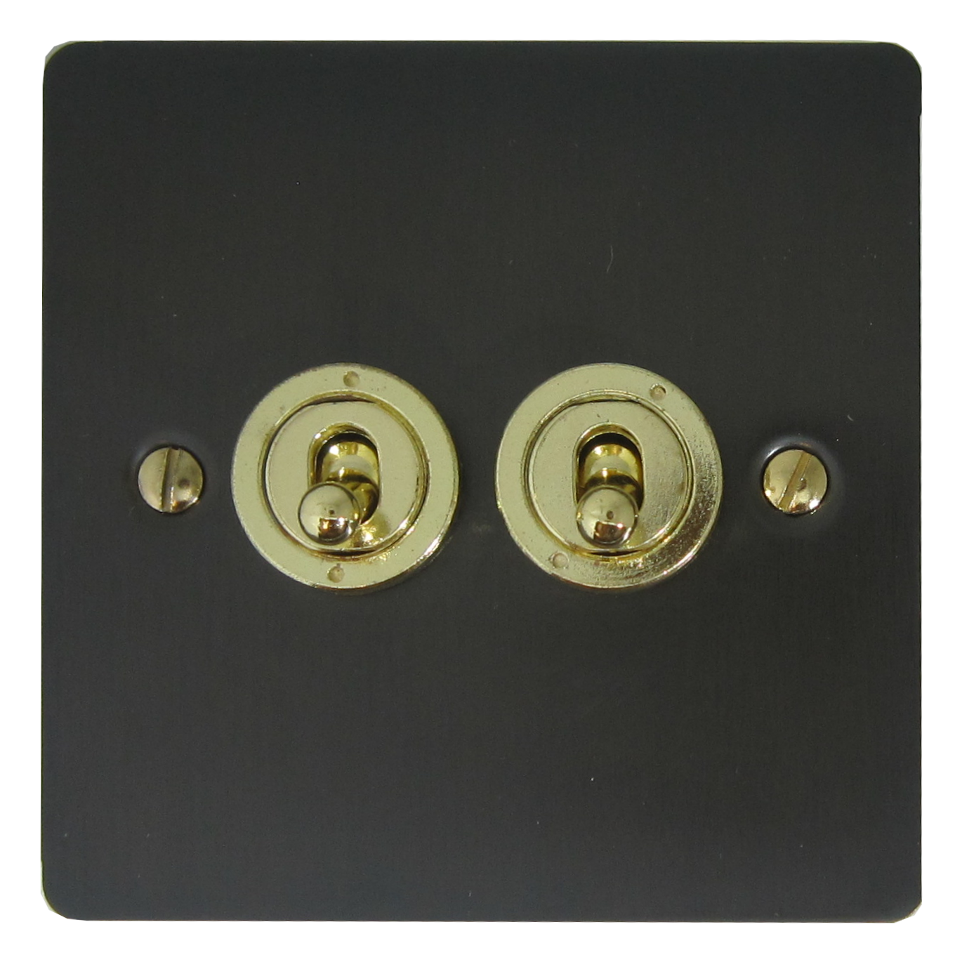 Flat Black Bronze Toggle Grid Plate (2 Gang/Polished Brass Toggle) - G+H FBB82-PB