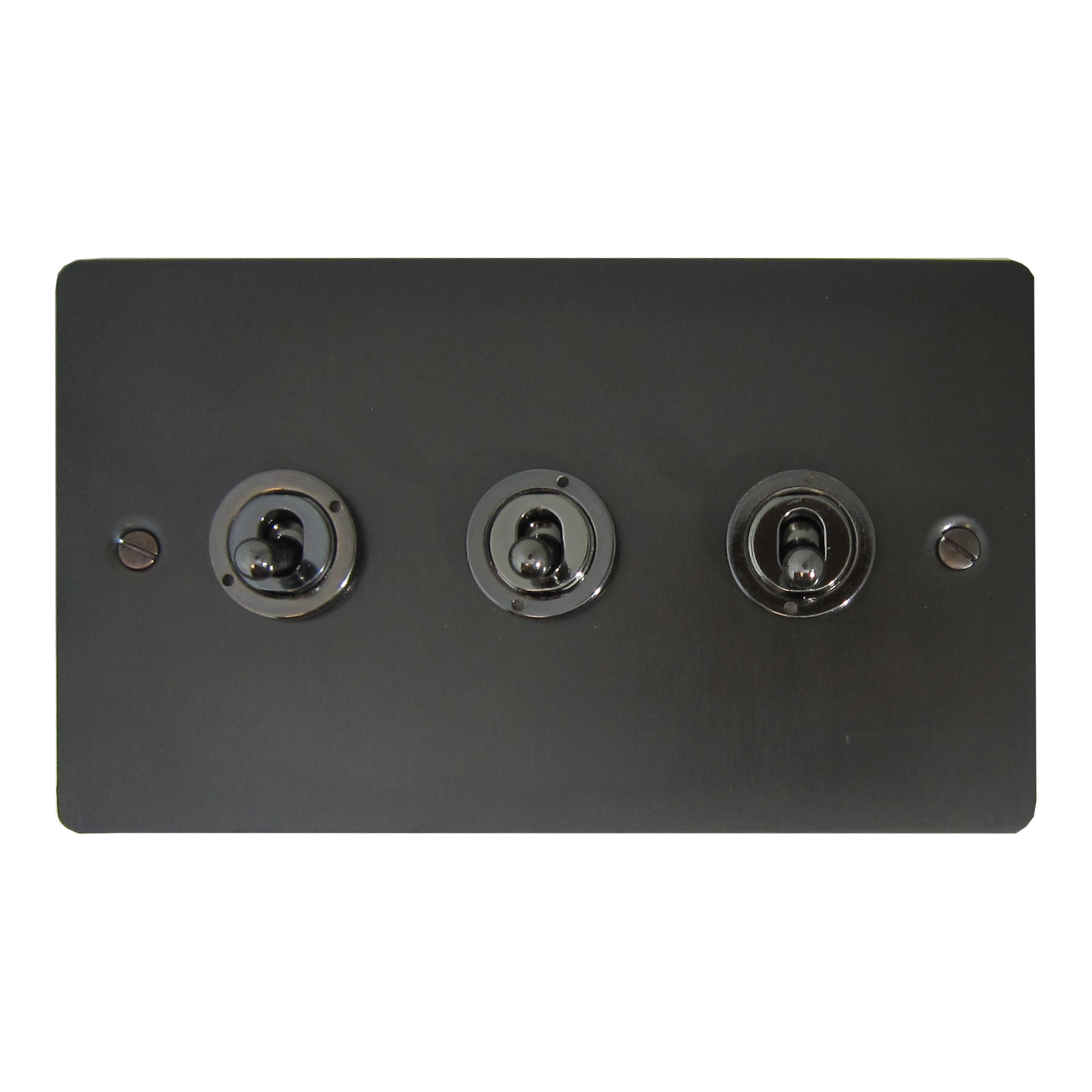 Flat Black Bronze Toggle Grid Plate (3 Gang/Black Nickel Toggle) - G+H FBB83-BN