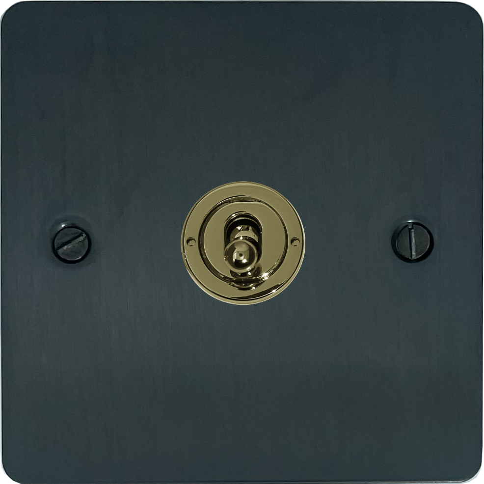 Flat Black Bronze Toggle Switch (1 Gang/Polished Brass Switches) - G+H FBB381-PB