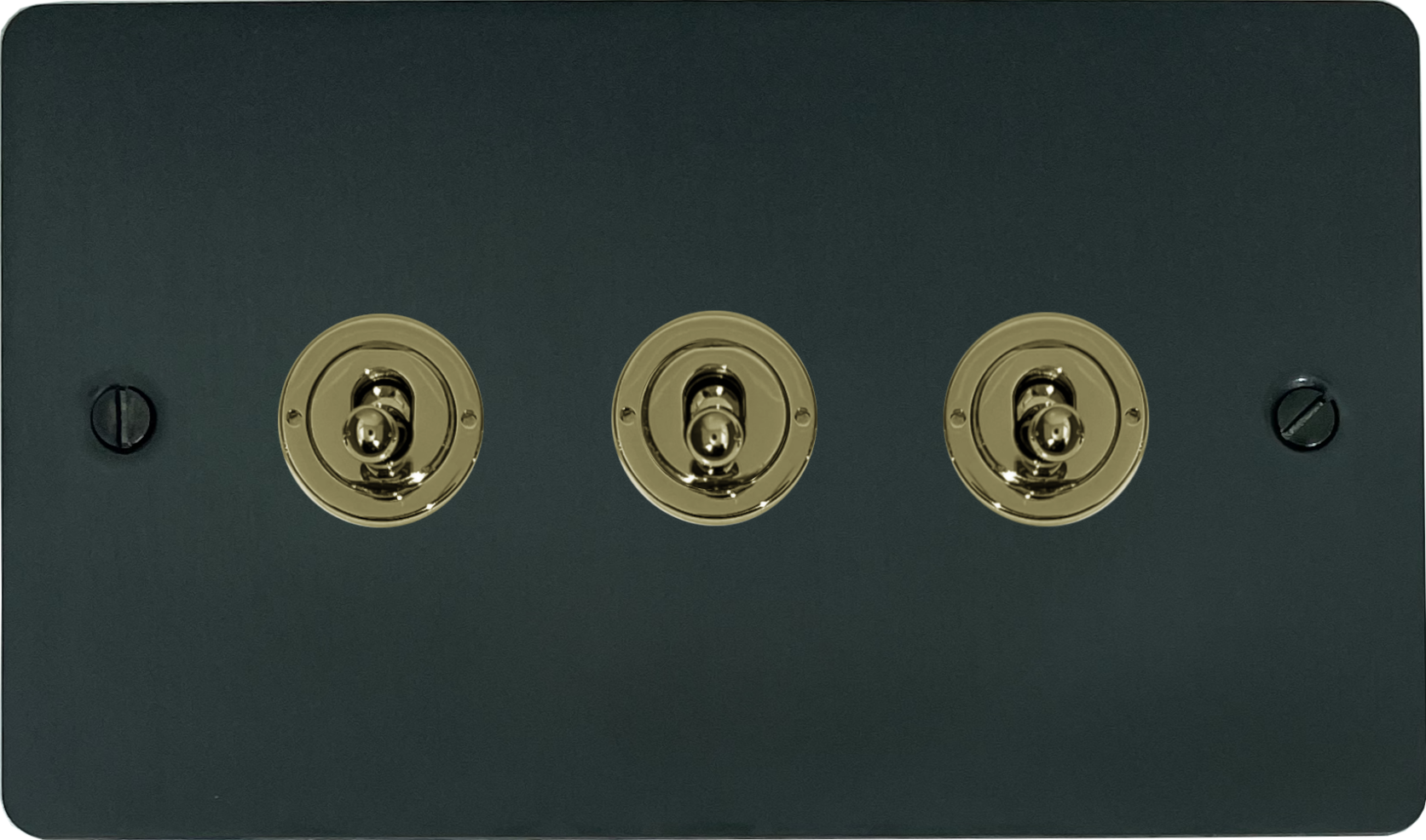 Flat Black Bronze Toggle Switch (3 Gang/Polished Brass Switches) - G+H FBB383-PB