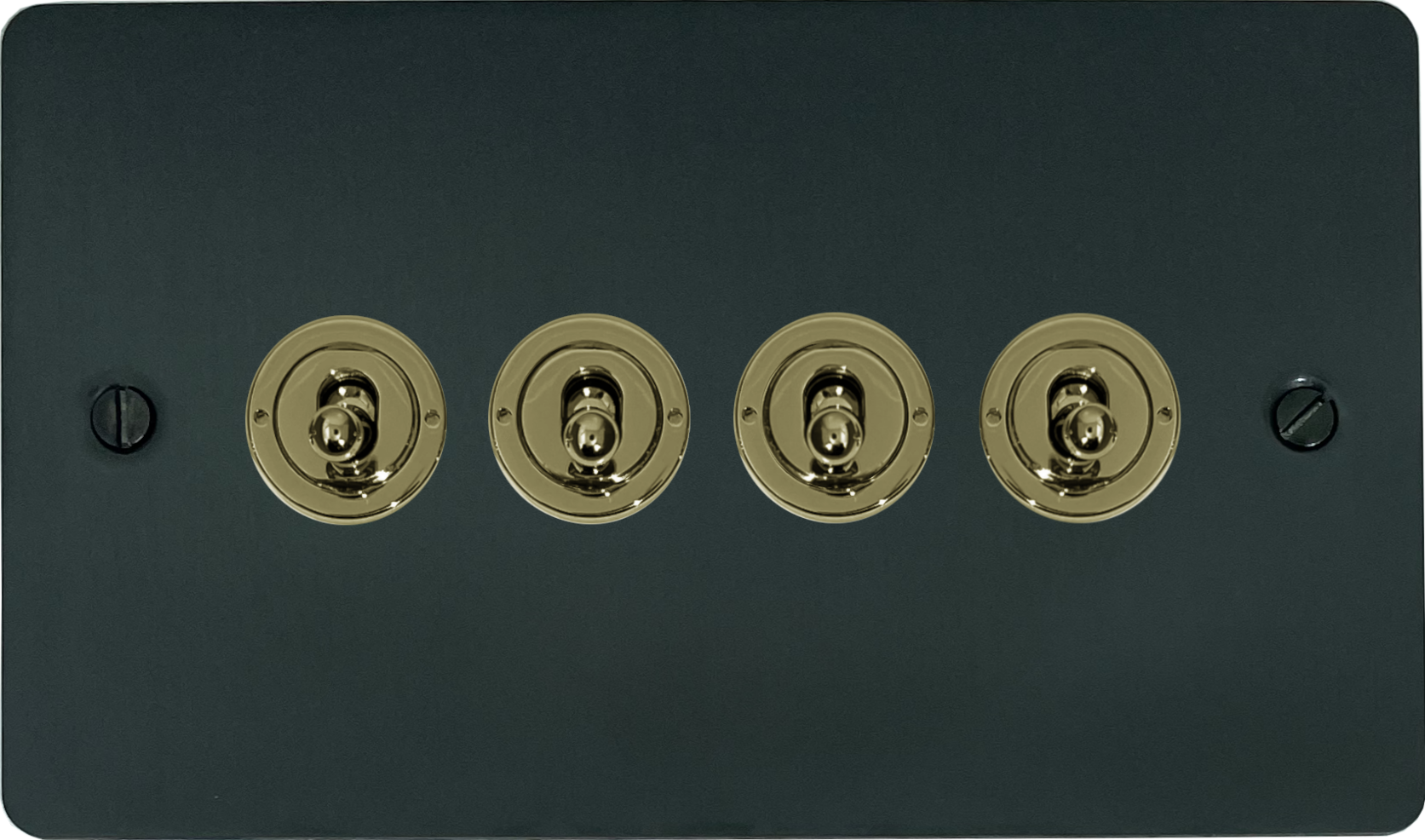 Flat Black Bronze Toggle Switch (4 Gang/Polished Brass Switches) - G+H FBB384-PB