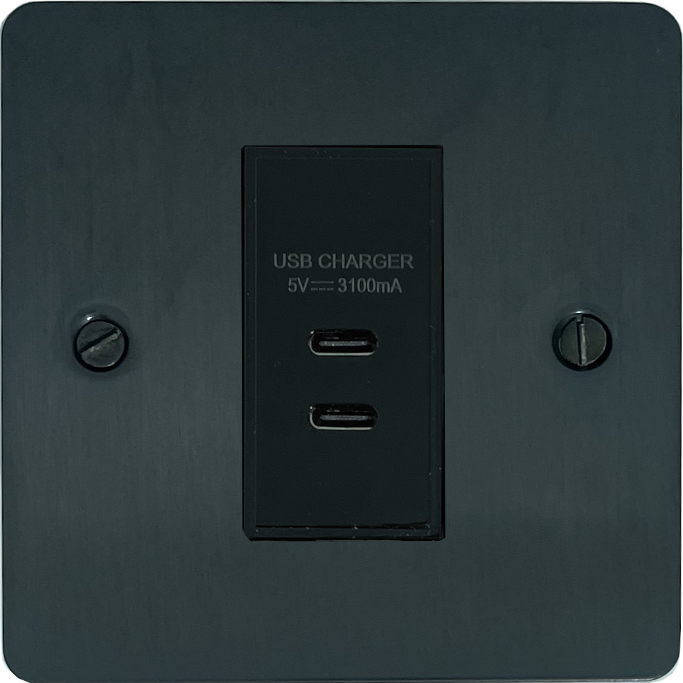 Flat Black Bronze USB Charger (2x USB-C) (Black Insert/1 Gang) - G+H FBB42B