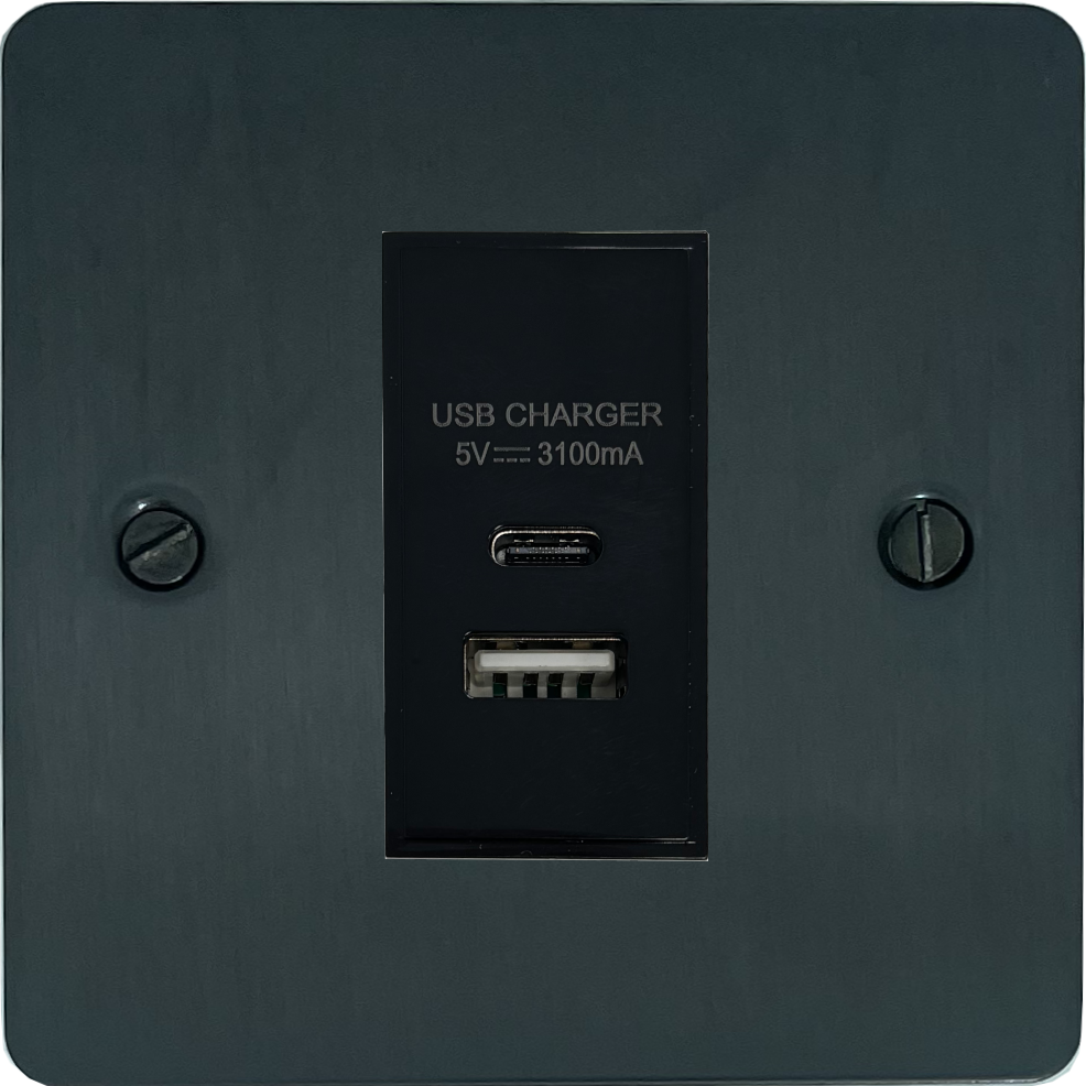 Flat Black Bronze USB Charger (USB-A and USB-C) (Black Insert/1 Gang) - G+H FBB41B