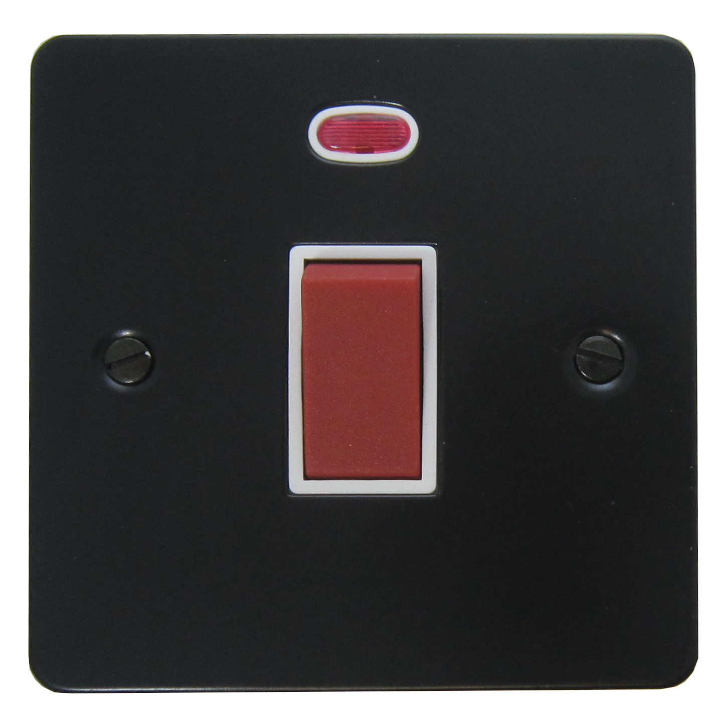 Flat Black Cooker Switch (45 Amp/Single Plate/White Inserts) - G+H FFB46W