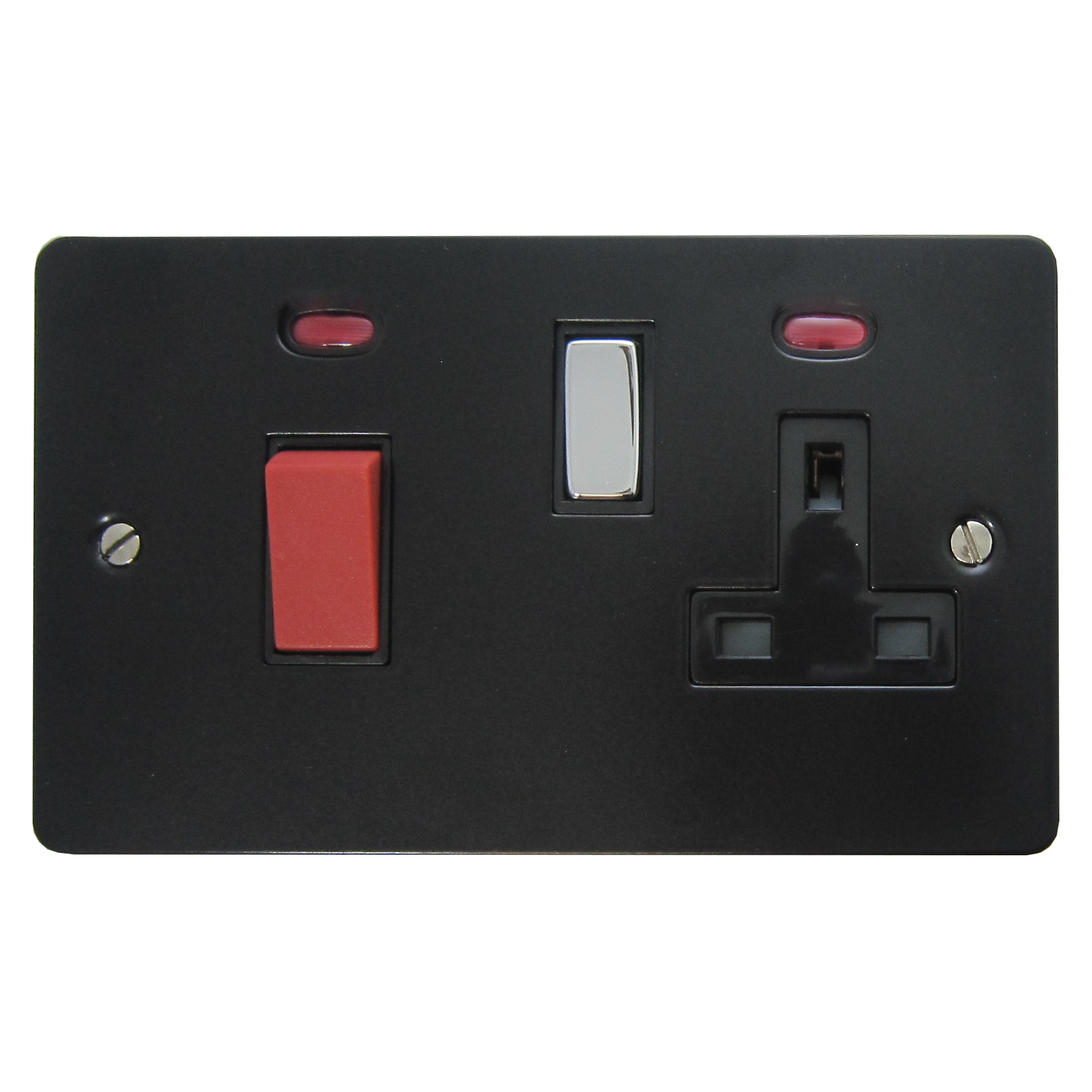 Flat Black Cooker Switch with Socket (45 Amp/Double Plate)-419099 - G+H FFB329-PC