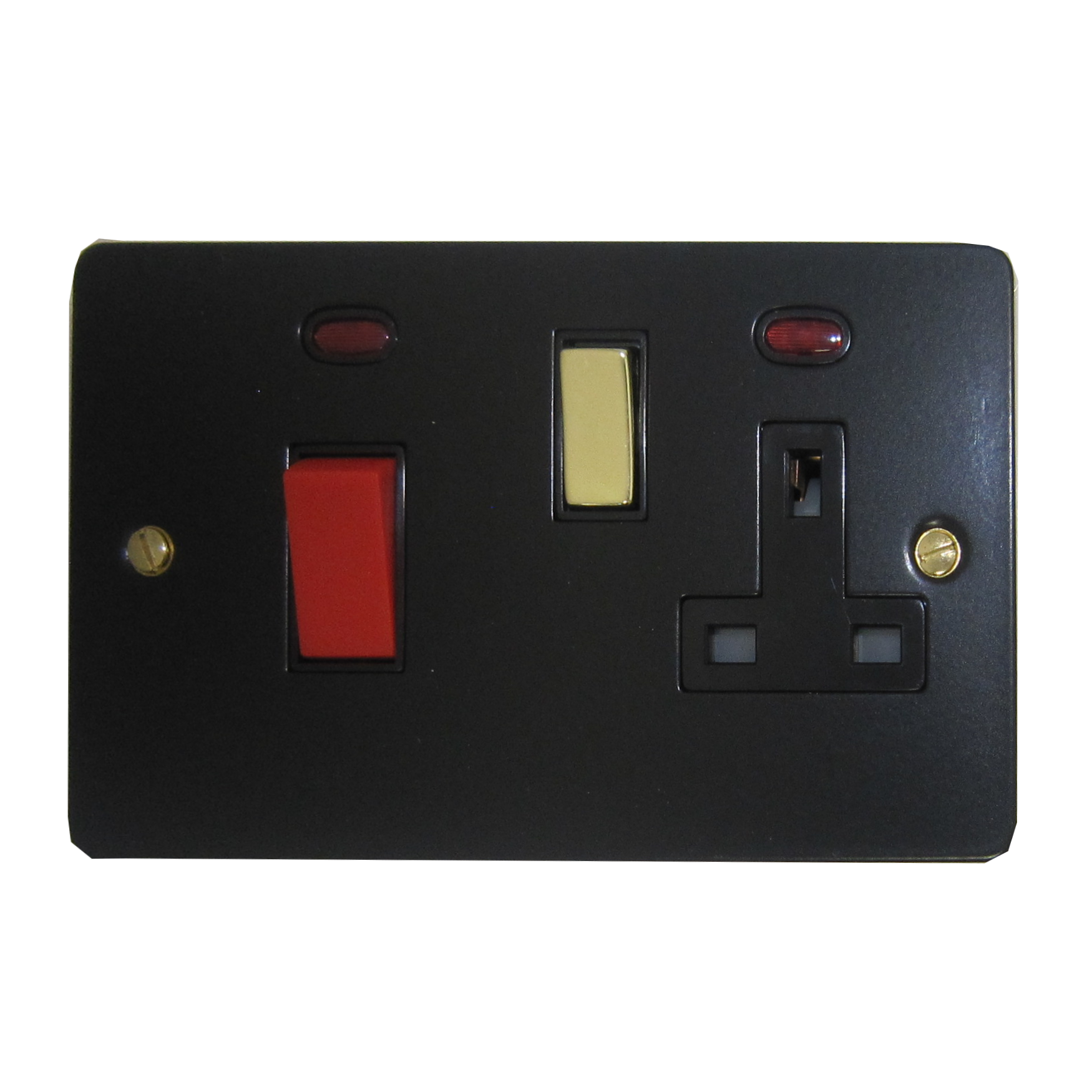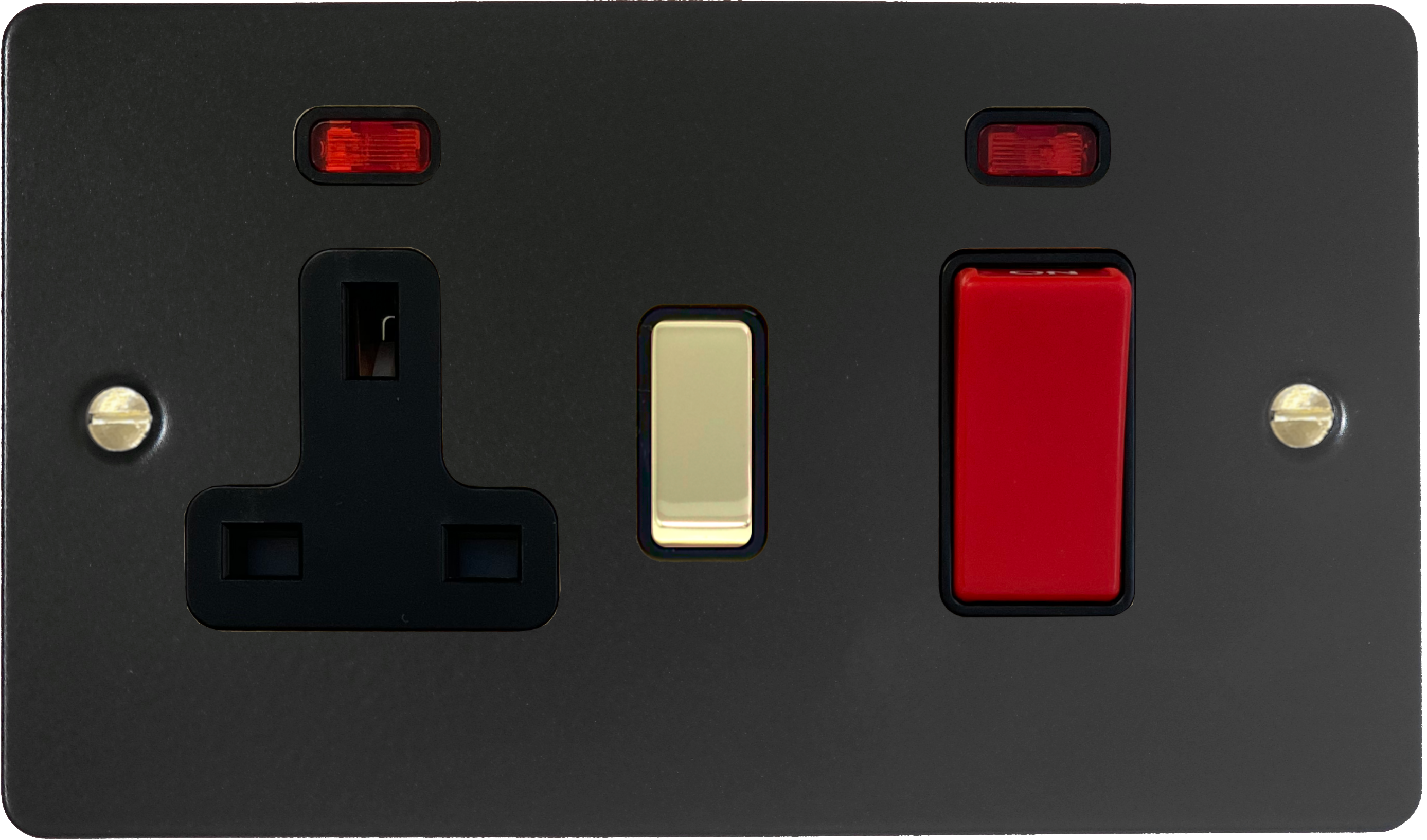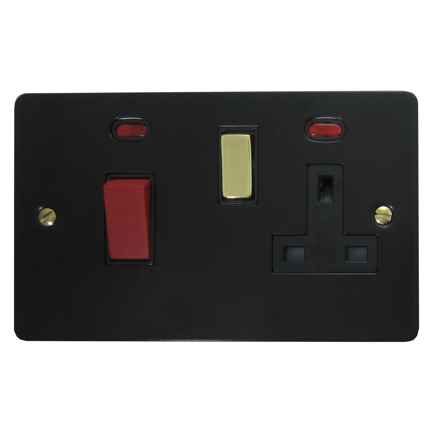 Flat Black Cooker Switch with Socket (45 Amp/Double Plate)-419121 - G+H FFB329-PB