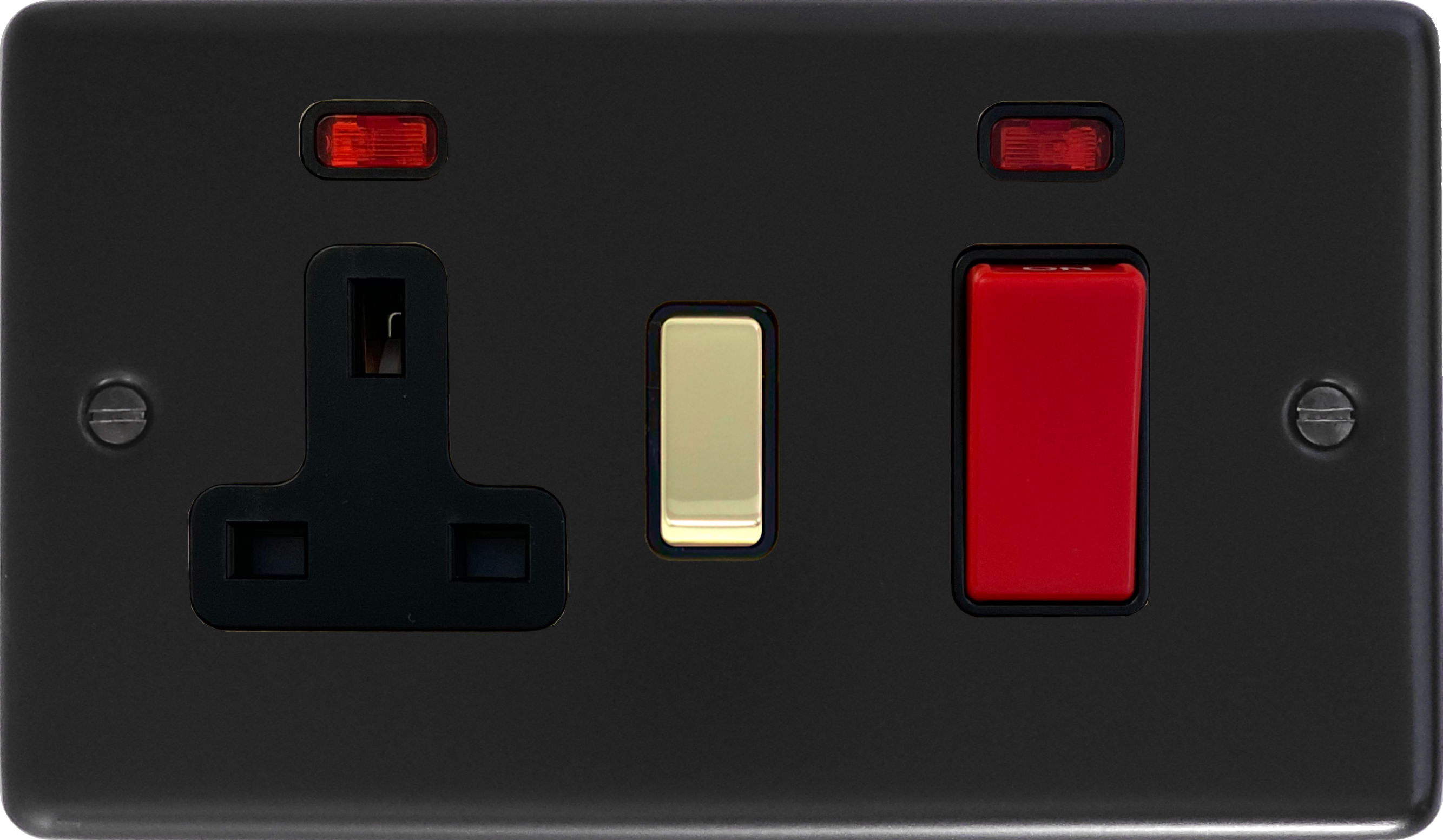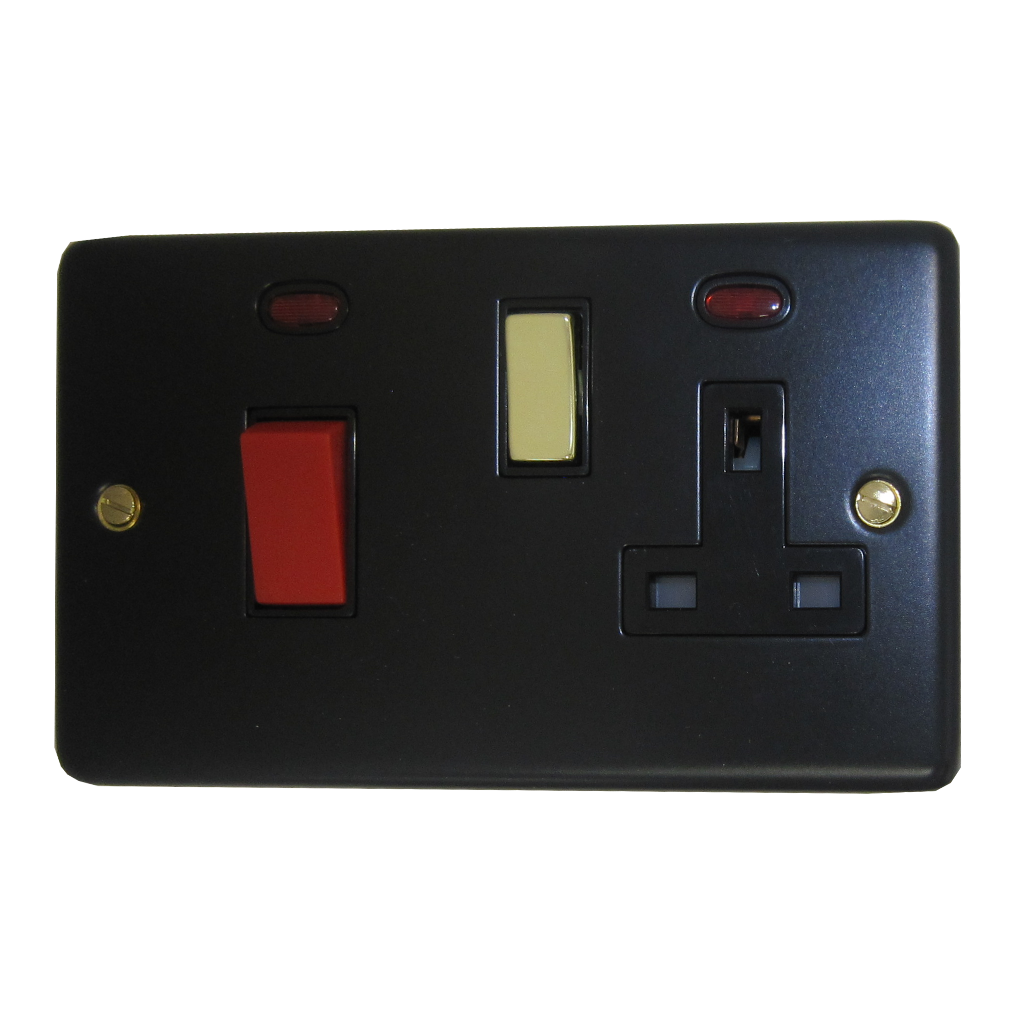 Flat Black Cooker Switch with Socket (Polished Brass Switch) - G+H CFB329-PB