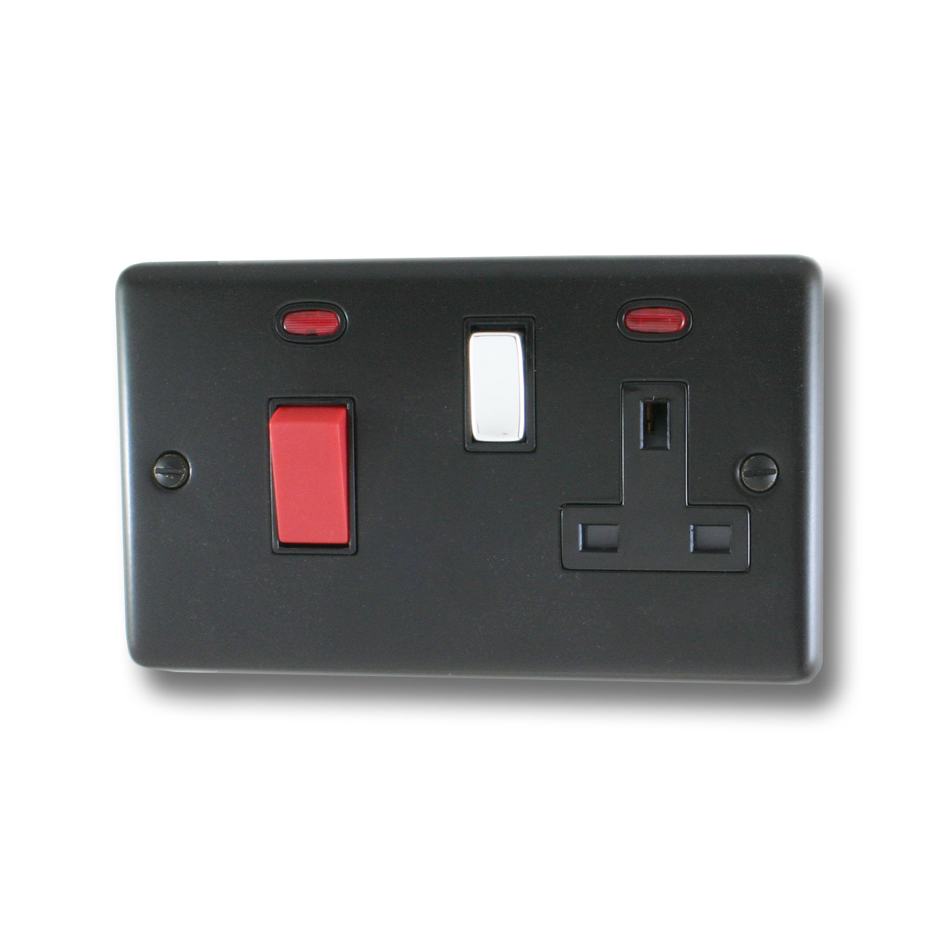 Flat Black Cooker Switch with Socket (Polished Chrome Switch) - G+H CFB329PC
