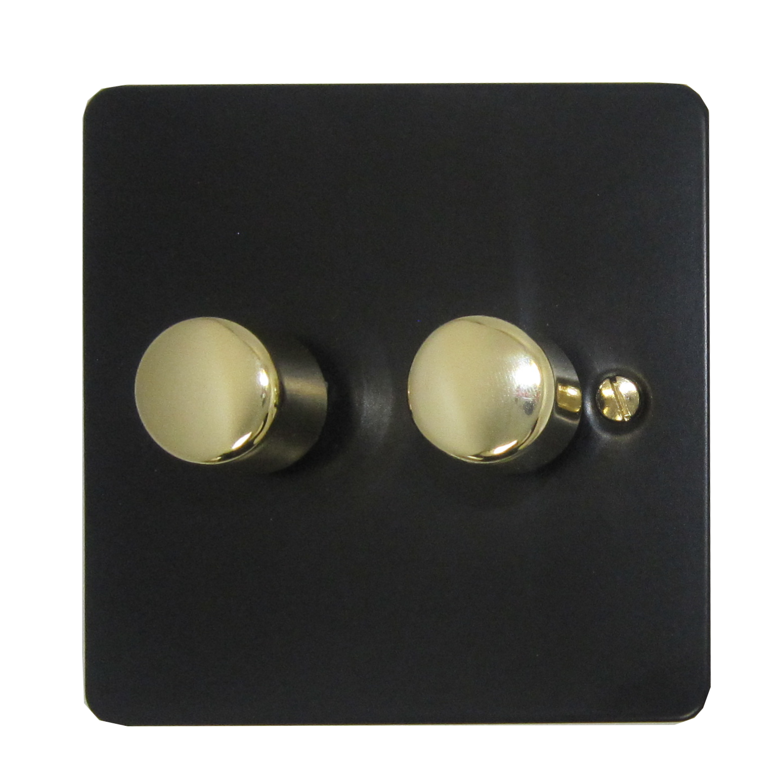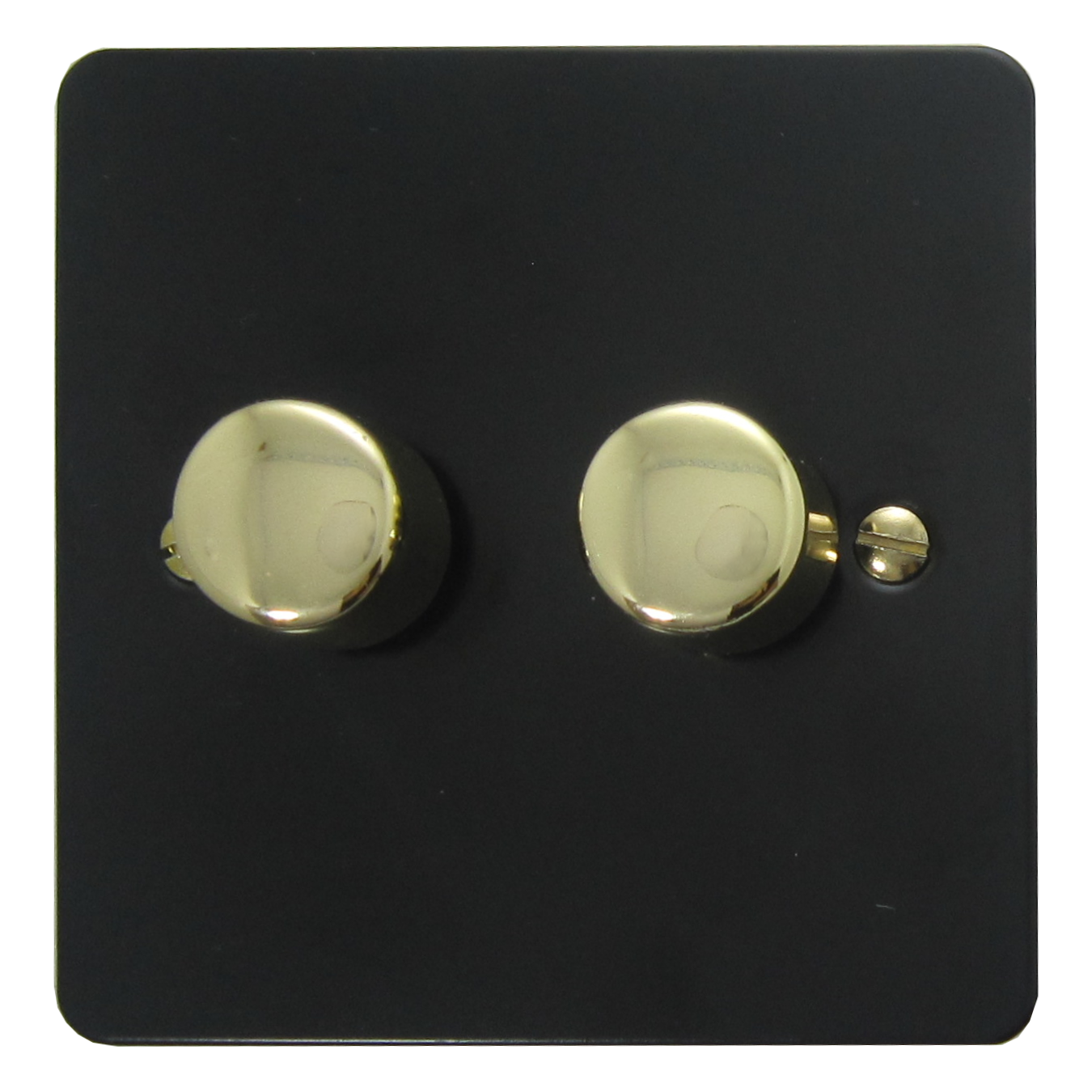 Flat Black Dimmer (2 Gang/400W/Polished Brass Caps) - G+H FFB12-PB