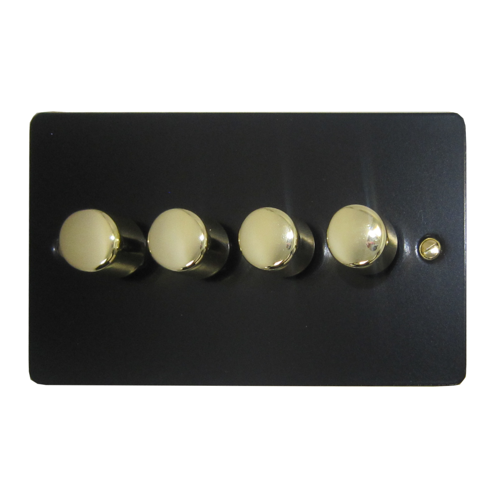 Flat Black Dimmer (4 Gang/400W/Polished Brass Caps)