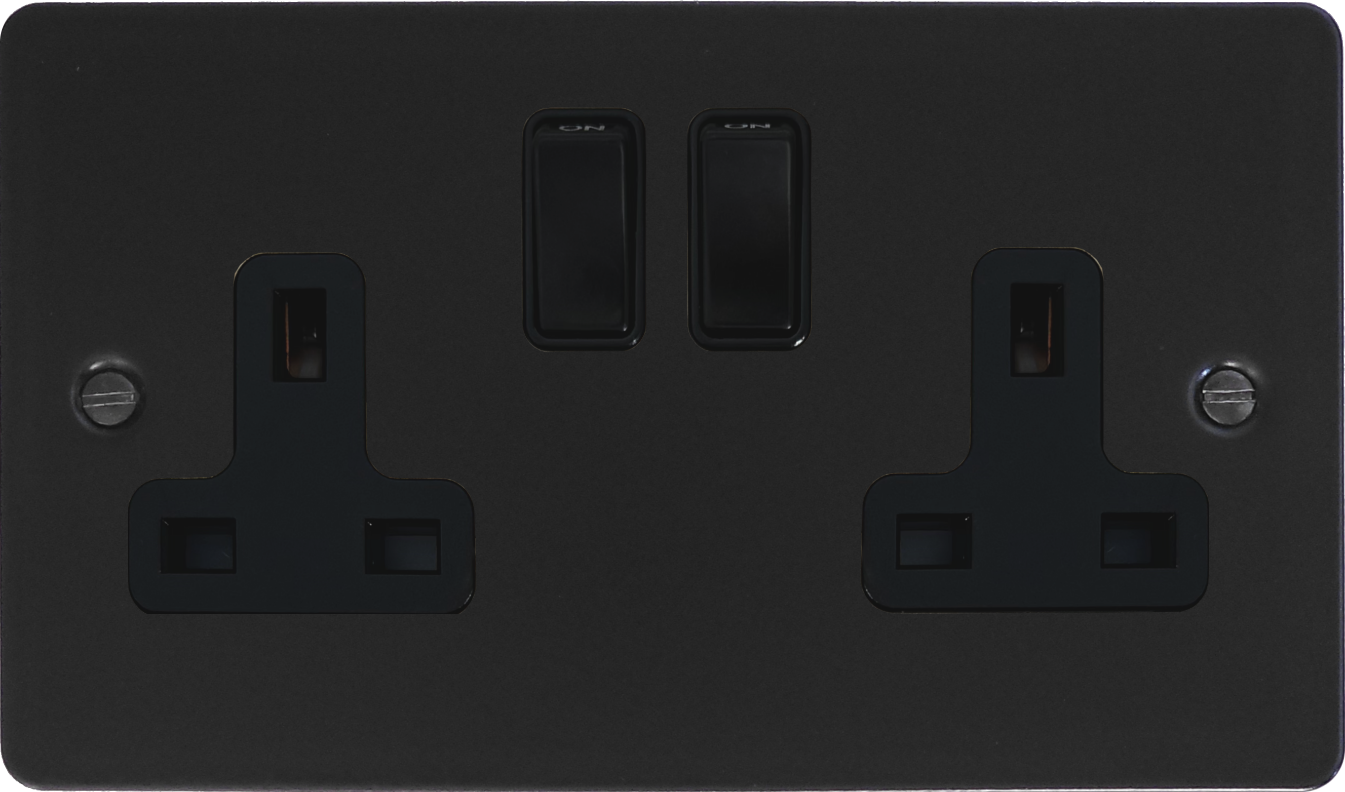 Flat Black Double Socket (2 Gang/Black Switch) - G+H FFB10B