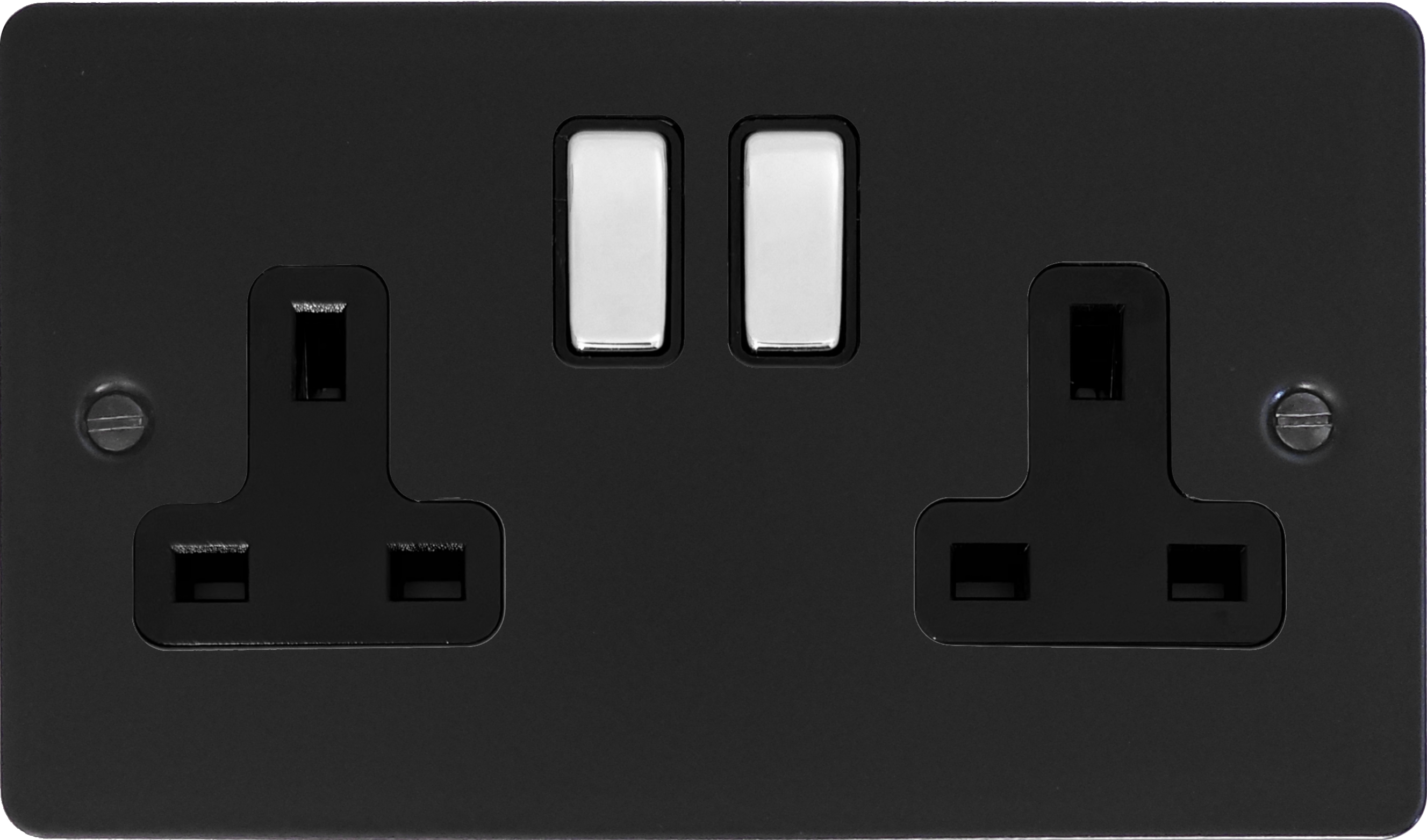 Flat Black Double Socket (2 Gang/Polished Chrome Switch)-419088 - G+H FFB310-PC