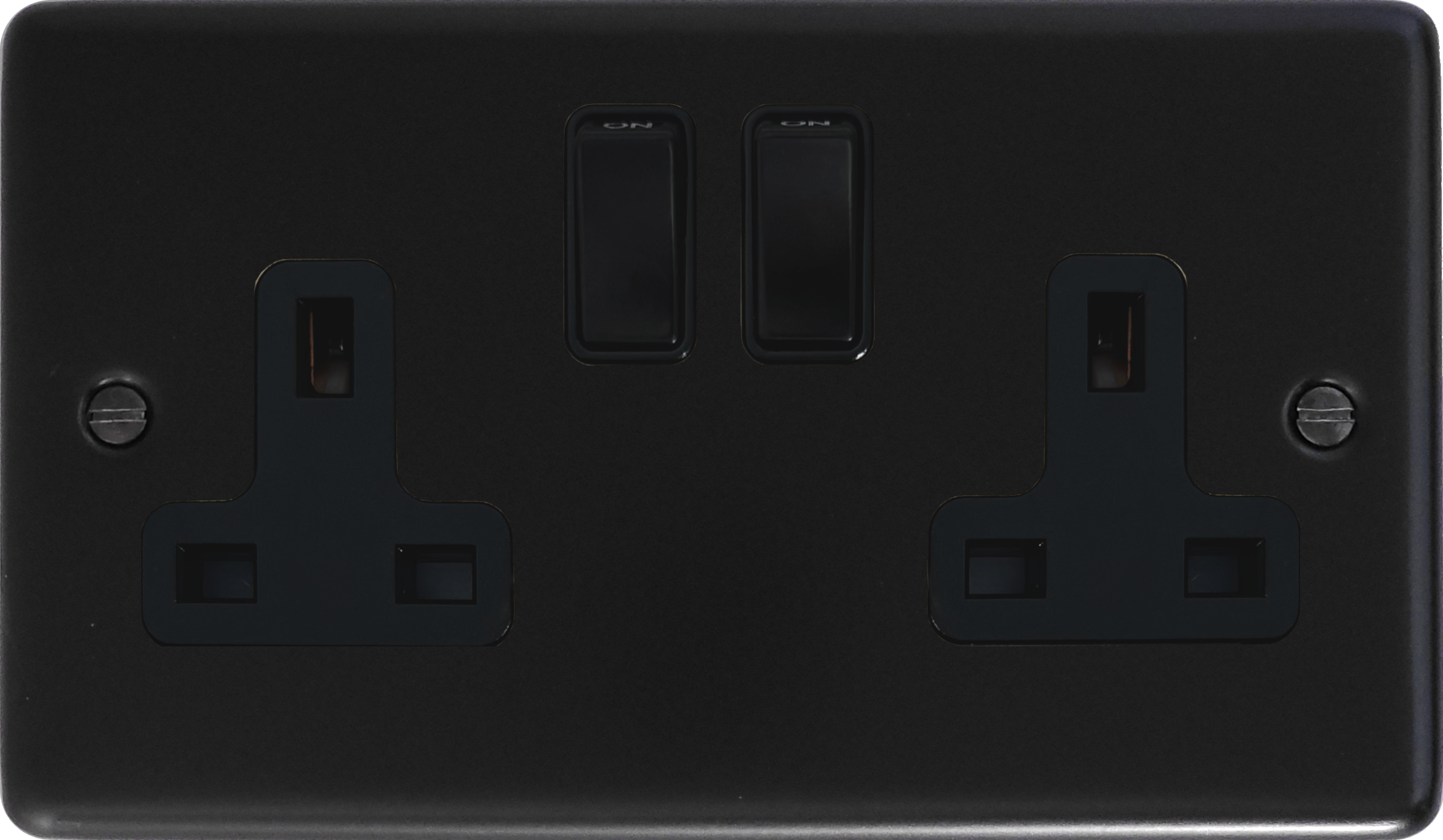 Flat Black Double Socket (Black Switch) - G+H CFB10B
