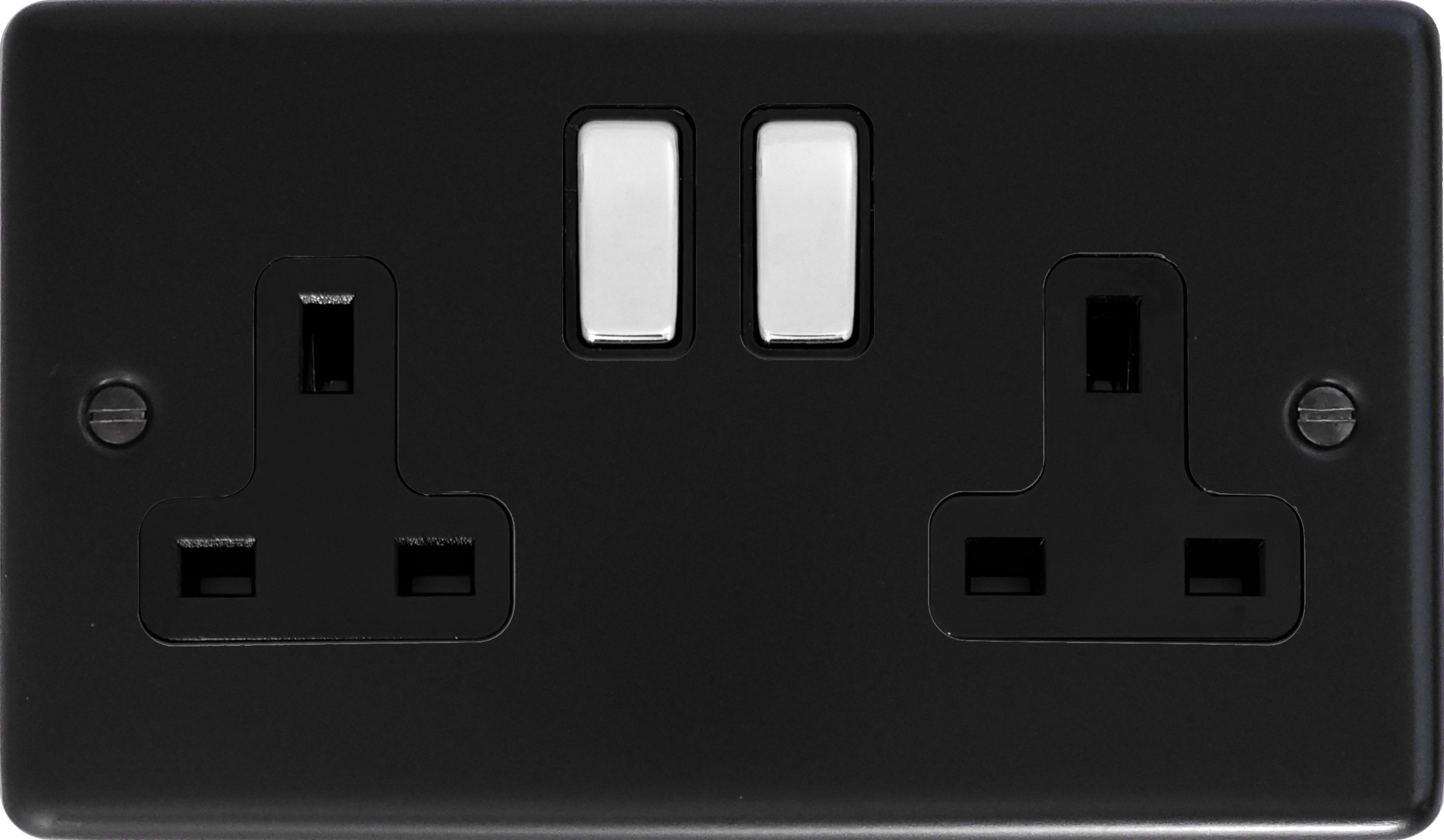 Flat Black Double Socket (Polished Chrome Switch) - G+H CFB310PC