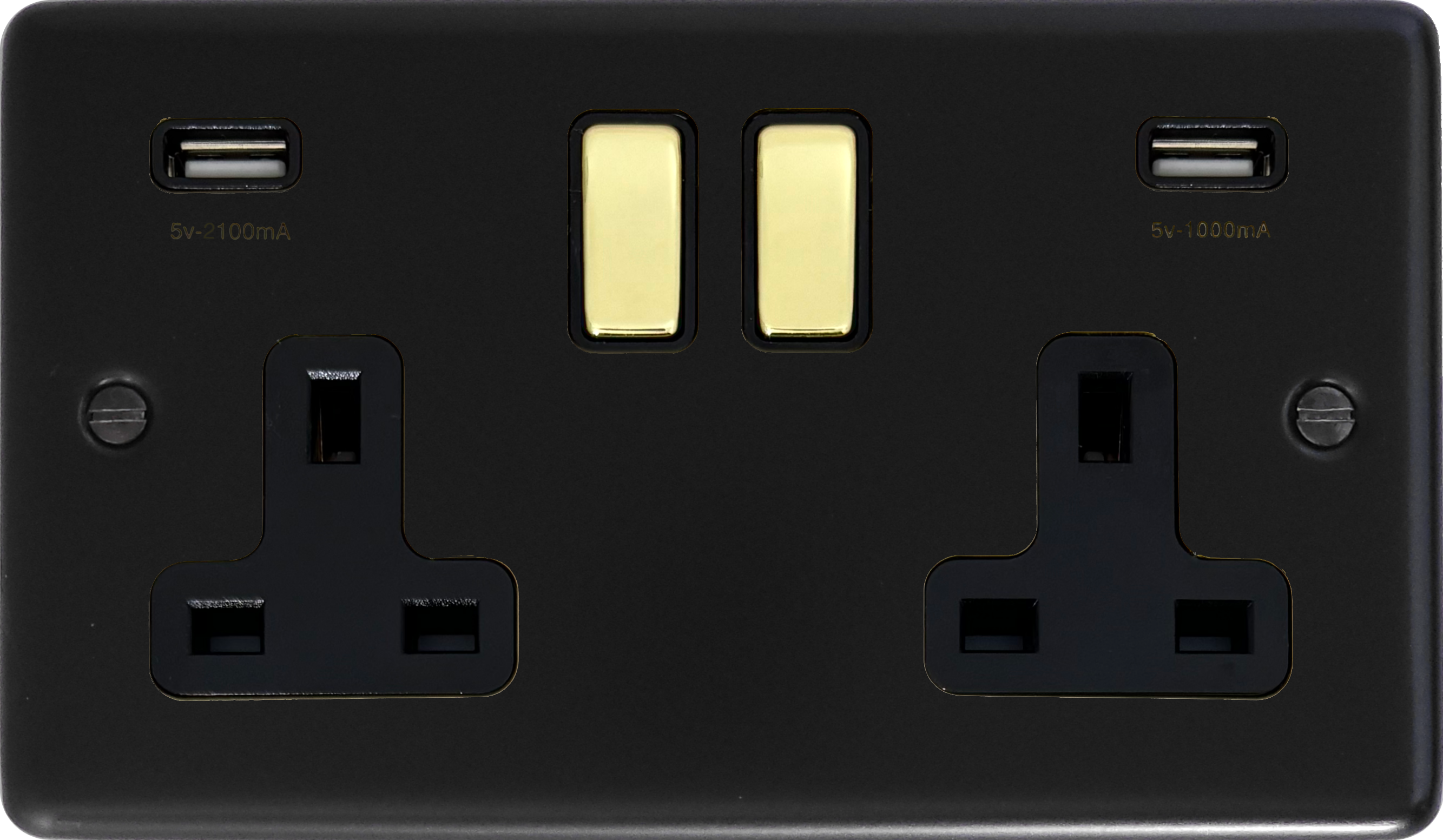 Flat Black Double Socket with USB-419133 - G+H CFB3910-PB