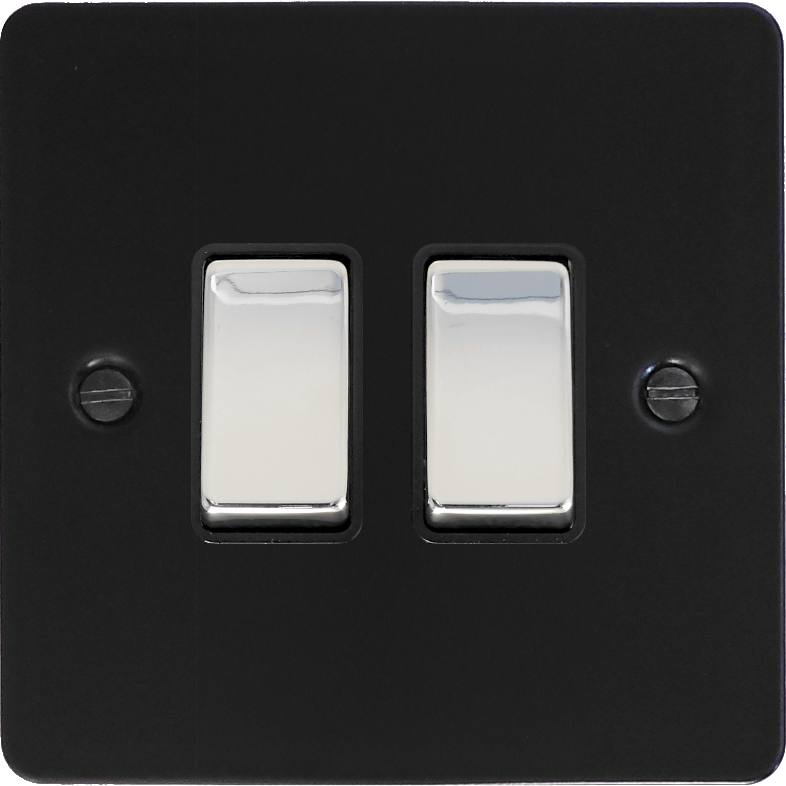 Flat Black Light Switch (2 Gang/Polished Chrome Switches)-419080