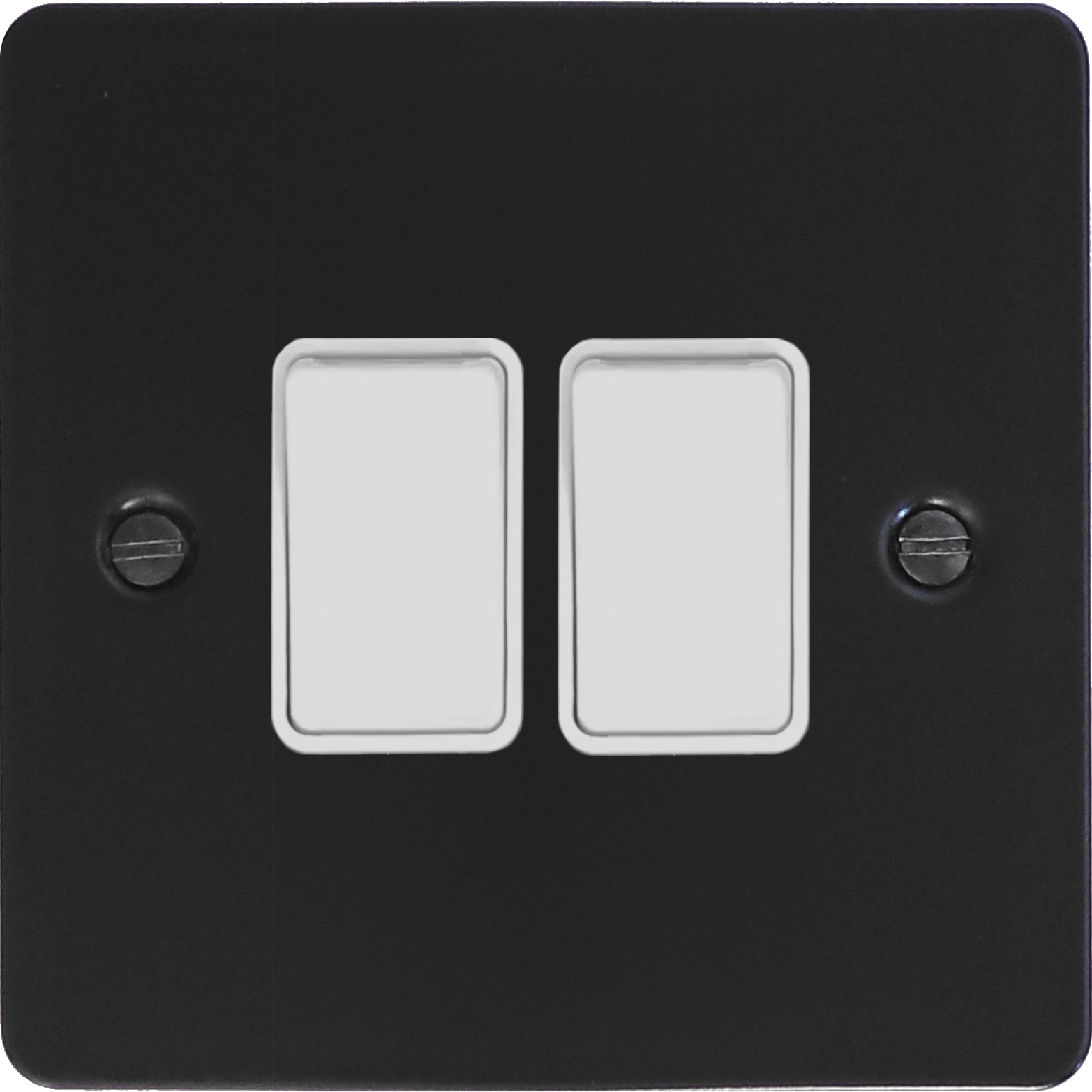 Flat Black Light Switch (2 Gang/White Switch) - G+H PIN30BK