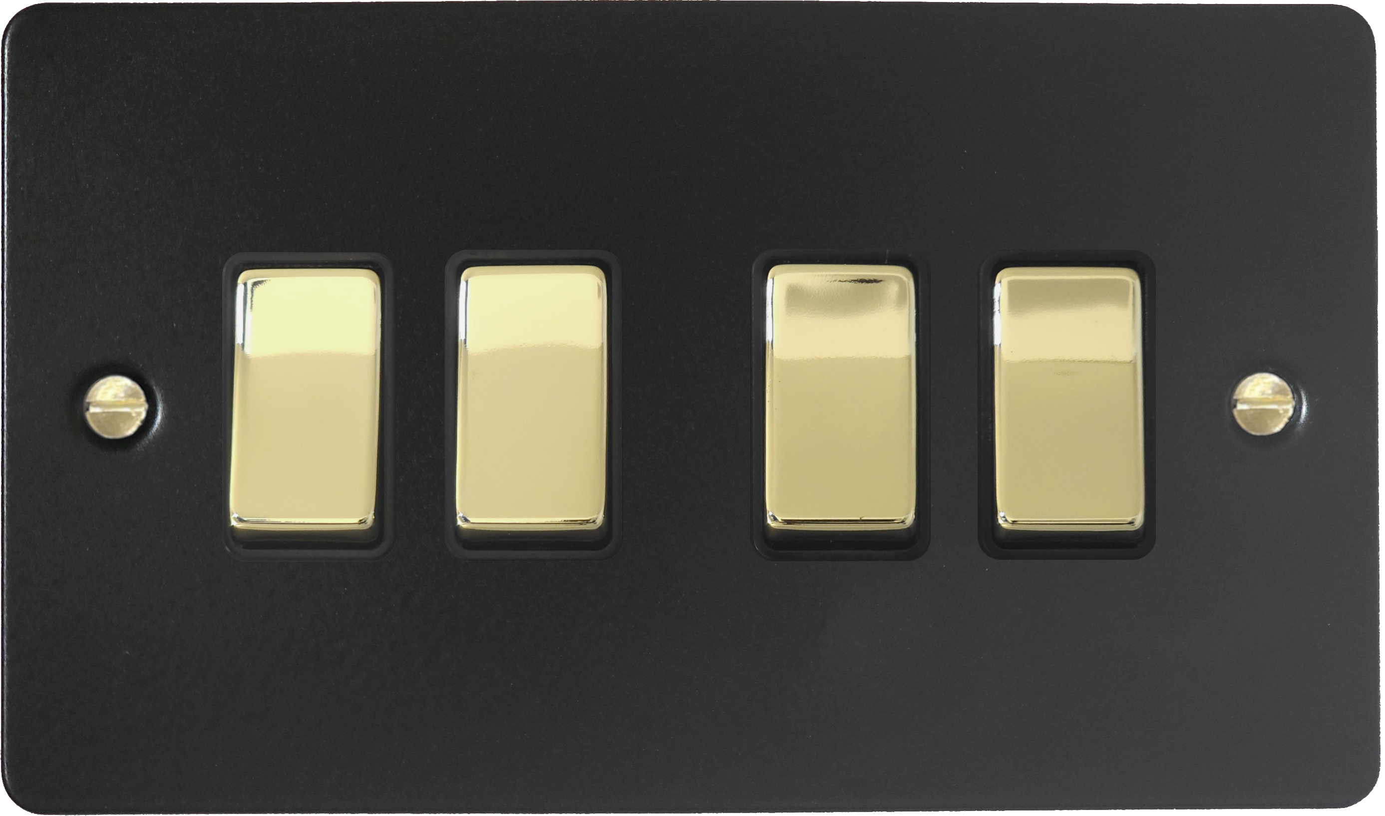 Flat Black Light Switch (4 Gang/Polished Brass Switches) - G+H FFB304-PB