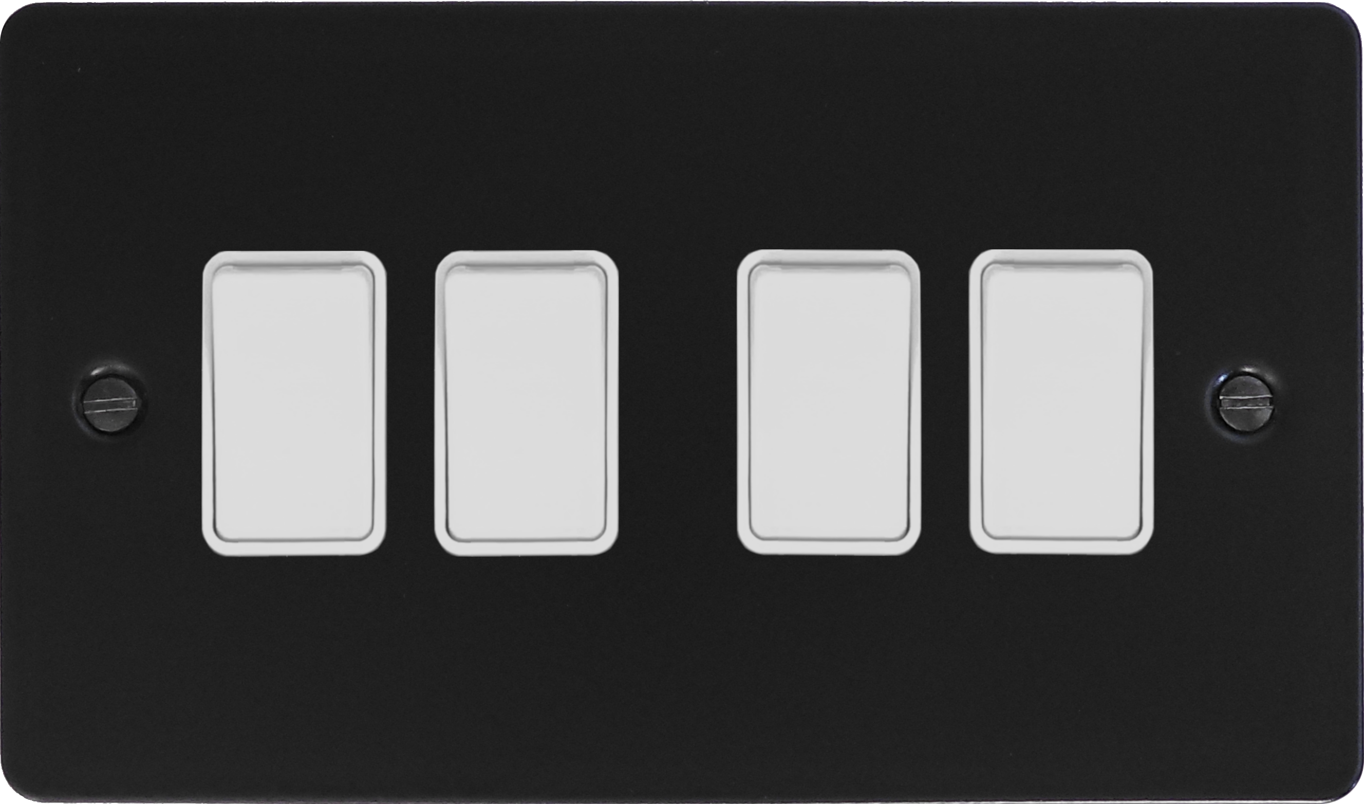 Flat Black Light Switch (4 Gang/White Switch) - G+H PIN30BK