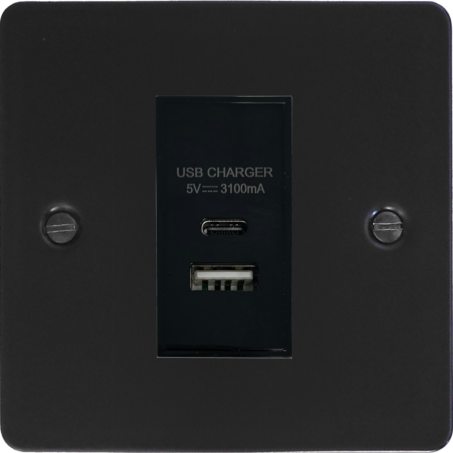 Flat Black Matt Black USB Charger (USB-A and USB-C) - G+H FFB41B