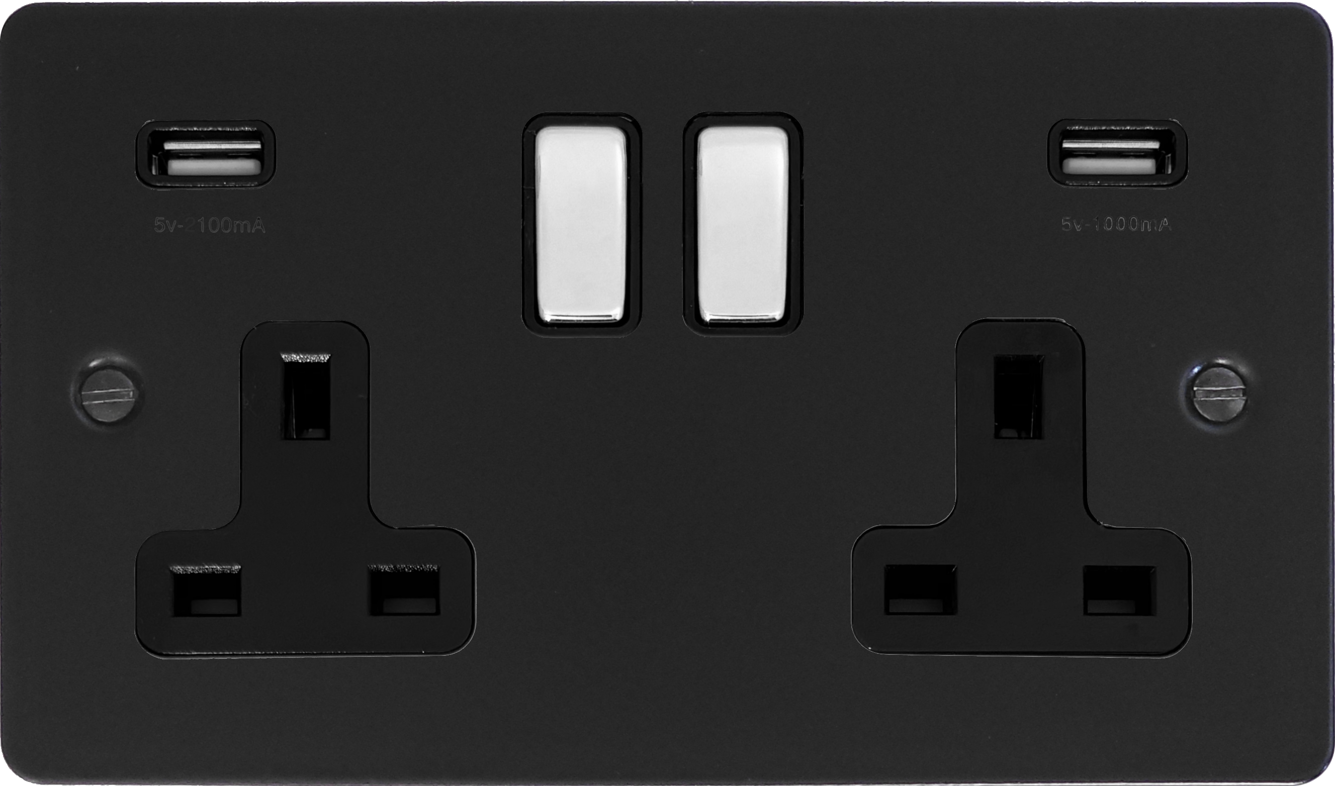Flat Black Socket Double Socket With USB Sockets (Metal Switches/Black Inserts)
